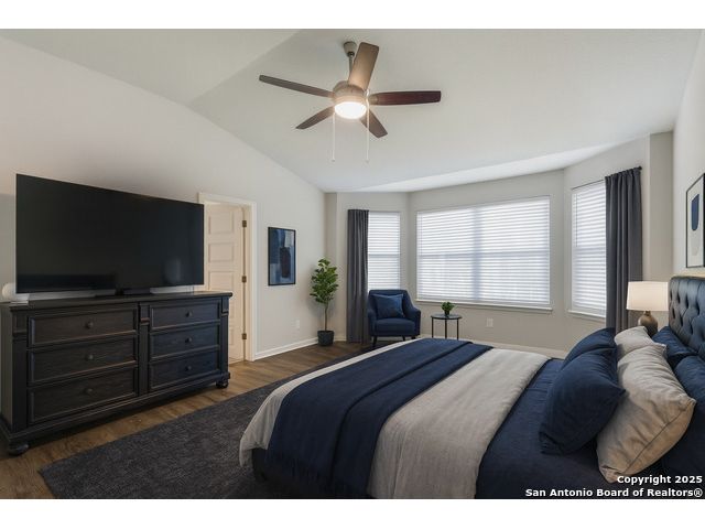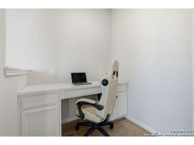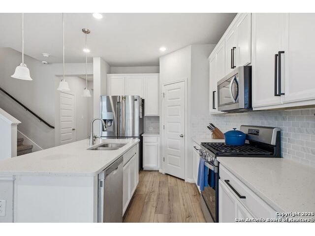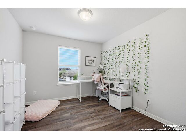 Welcome to 11652 Folsom Pass, a beautifully maintained move-in ready modern home in the highly desirable Harlach Farms community-located less than one mile from Hwy 90 for a faster commute to Lackland AFB (11mi), Kelly Field (15mi), and Fort Sam (22mi). Perfect for PCS relocations, this home delivers comfort, convenience, and outstanding energy efficiency. Inside, you'll love the open-concept layout with NO carpet downstairs or in any of the bedrooms, offering a clean, modern, low-maintenance living environment especially for your fur babies. The upgraded kitchen features white cabinetry, quartz countertops, stainless steel appliances, and a spacious island that flows effortlessly into the living and dining areas. As a Meritage Home, this property includes spray-foam insulation in the attic and enhanced air filtration, helping maintain comfortable temperatures, reduce utility costs, and support cleaner indoor air, ideal for those buyers seeking energy-smart living. Additional upgrades include a newer 14-SEER HVAC system for efficient cooling, a water softener and an EV charger installed in the garage, a standout feature in this price point. The owner's suite offers a peaceful retreat with a generous walk-in closet and spa-style bath. Secondary bedrooms are well-sized with one split from the remainder making it versatile-perfect for a gym or guests. Not to mention, there is a pocket office downstairs and game room upstairs perfect for entertaining. The backyard features a covered patio that has been extended for ample grilling space, relaxing, or pets. The Harlach Farms community includes a pool, park, and walking paths for everyday convenience and with quick access to Hwy 90, Loop 1604, Costco, shopping, dining, and highly rated schools, this home provides the ideal blend of efficiency, location, and lifestyle. Schedule your showing today!