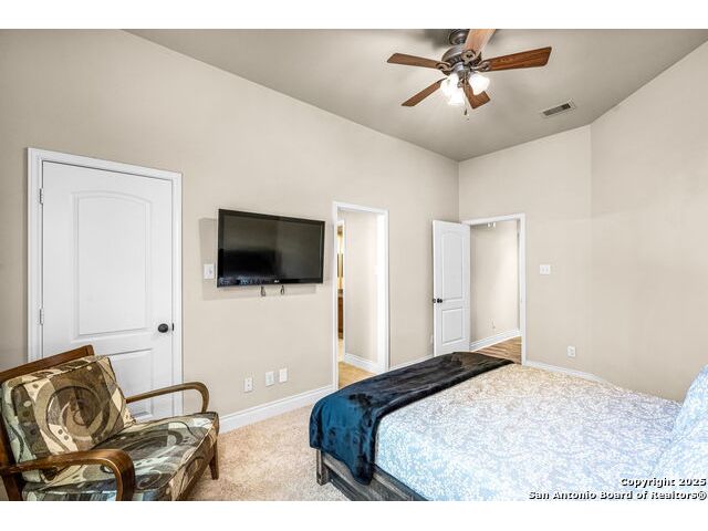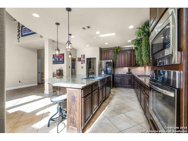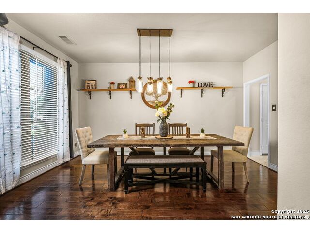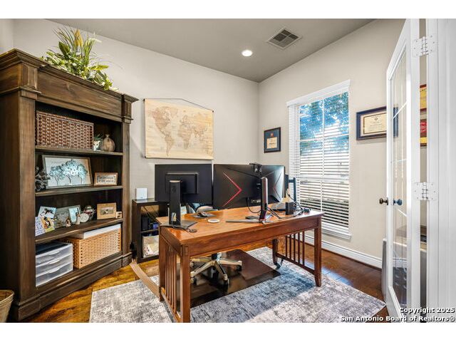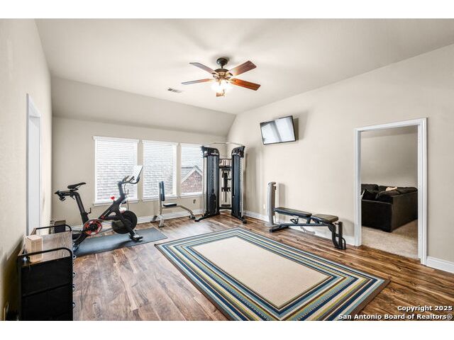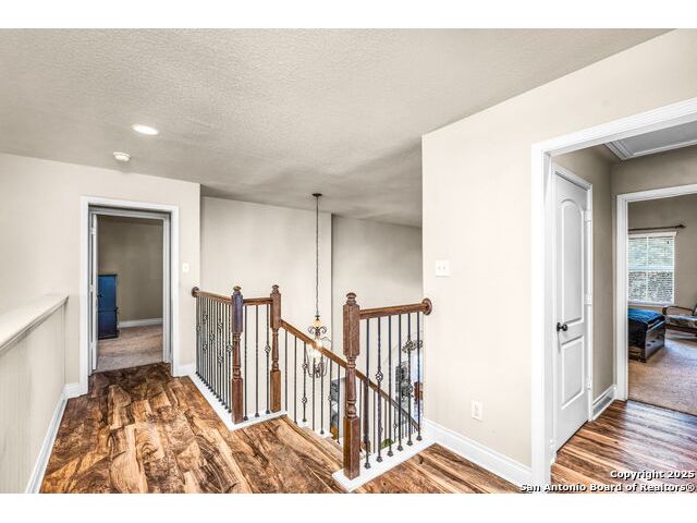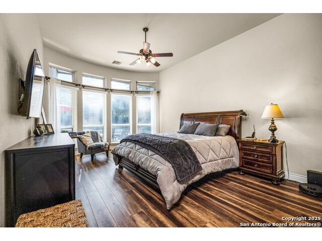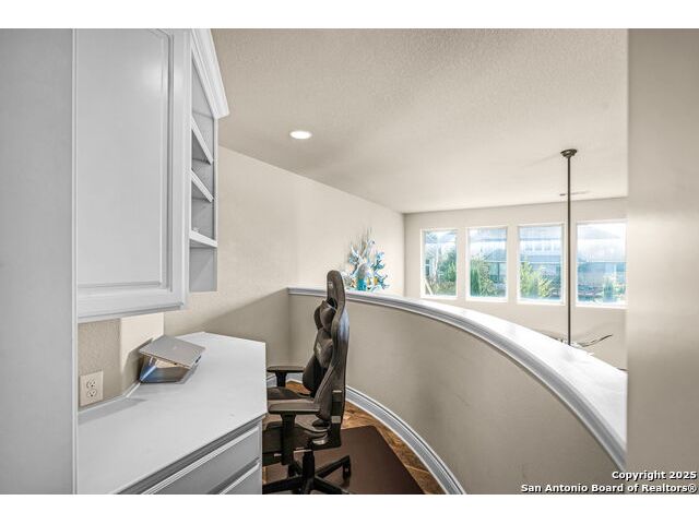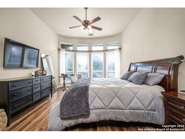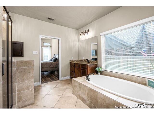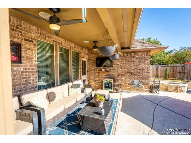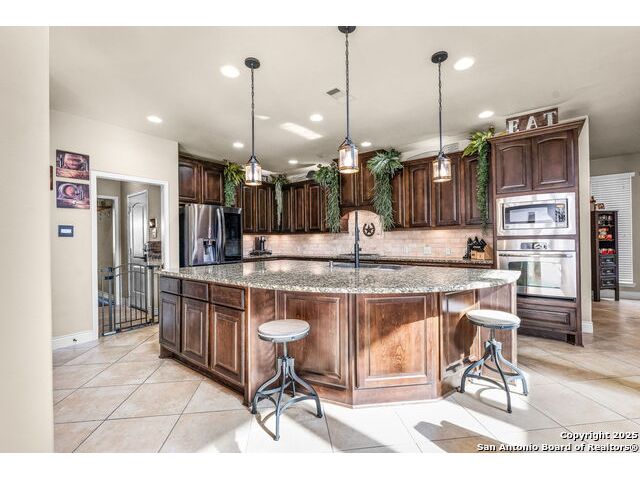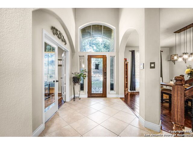 Welcome to this stunning 5-bedroom, 4.5-bathroom residence nestled in the highly sought-after Oak Run subdivision in New Braunfels, Texas. This exceptional two-story home offers an impressive blend of sophistication, comfort, and thoughtful design, all set on a beautifully landscaped lot with a custom-built gate and fencing that enhance both curb appeal and privacy. With its striking brick-and-stone exterior, mature trees, and meticulously maintained grounds, the property delivers a warm and inviting first impression the moment you arrive. Step inside to a spacious, open-concept layout featuring soaring high ceilings and an abundance of natural light. The large living room serves as the heart of the home, complete with a charming wood-burning fireplace, large windows overlooking the backyard oasis, and seamless flow into the kitchen and dining areas. The kitchen is designed for both everyday living and entertaining, offering a generous center island, gas cooking, ample cabinetry, sleek counters, and direct access to the cozy morning room-perfect for casual meals or enjoying your first cup of coffee. A formal dining room adds an elegant space for gatherings and holiday meals, while the dedicated office provides an ideal setting for remote work or quiet productivity. The home offers exceptional functionality with two bedrooms located on the main level, including a luxurious primary suite featuring a spa-inspired bathroom, dual vanities, a soaking tub, separate shower, and a spacious walk-in closet. The secondary downstairs bedroom, complete with its own private bath, is perfect for guests, multigenerational living, or a quiet retreat for extended family members. Upstairs, you'll find a thoughtfully designed layout that includes a large game room, a separate media room, and three additional bedrooms, each offering comfortable space and generous storage. A convenient Jack-and-Jill bathroom connects two of the upstairs bedrooms, adding to the home's practical and well-balanced floor plan. Step outside and escape to your very own backyard paradise. The highlight of this outdoor space is the custom pool featuring a relaxing tanning ledge, integrated seating, and beautiful stonework. Multiple lounge areas and an extended covered patio provide plenty of room for outdoor dining, entertaining, or simply unwinding after a long day. The lush landscaping, privacy fencing, and thoughtful design create a serene and inviting environment that feels like a private resort. Located in one of New Braunfels' most desirable neighborhoods, this Oak Run beauty is just minutes from NBISD schools, shopping, dining, medical facilities, and major commuter routes. Residents of Oak Run also enjoy access to community amenities including pools, parks, and walking paths, making it a fantastic place to live, relax, and thrive. This exceptional property seamlessly blends style, comfort, and modern living in a prime New Braunfels location. Don't miss the opportunity to make this remarkable home your own!