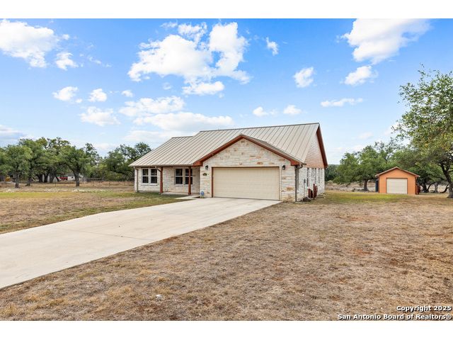 Ready to be swept off your feet? Your soon to be home is in absolute PRISTINE condition! Nestled on a stunning 5.08-acre parcel surrounded by natural beauty, this home is fully move-in ready. Walk in to a gorgeous living room with high, wood plank ceiling. The kitchen is just PERFECT for the culinary enthusiasts; containing a beautiful, oversized, stainless steel refrigerator sitting in custom made, solid wood cabinets and a pantry with pull out drawers and updated with a new electric stove and double oven in 2025! Spacious dining room contains a door opening to a beautifully designed screen-enclosed room that functions effortlessly as an exercise studio, wellness lounge, or private retreat. This space is enclosed with Andersen custom metal-clad exterior, all-wood interior patio doors and provides a beautiful, natural transition into the enclosed outdoor sanctuary-ideal for year-round enjoyment. Master bedroom contains a walk in closet with gorgeous custom made cabinetry extremely helpful for additional storage. Bathroom tubs, toilets, and faucets like new! Guarantee you will be in awe after seeing this two car garage containing sealed slate flooring, custom made cabinets, water softener, oversized water heater, new garage doors, and...a like-new sauna that offers a serene, spa-inspired escape. Whole house has solid wood shutters, complimenting the new beautiful, energy saving windows. A full exterior remodel done summer 2025, ensures the home reflects modern design and long-lasting craftsmanship. Walk out to backyard to find a shed with epoxy coated floor, shelving, and a compartment for protecting water well and capacity to hold a tractor. Also, shed has newly installed gutters. There is also a 250K gallon water tank in back of shed. House is also equipped with UV filters to make air cleaner inside the home, tremendously helping with allergy issues. These are only some of the MANY qualities of this gorgeous home- guaranteed to make you fall in love! Make your way to your future home soon!