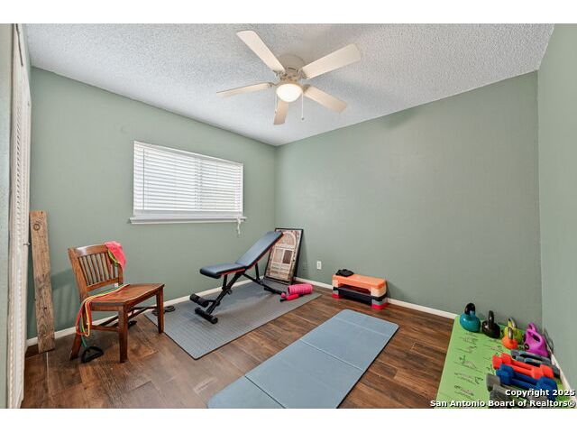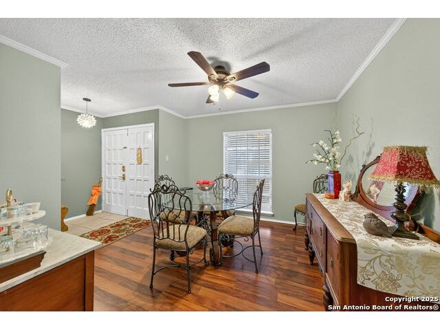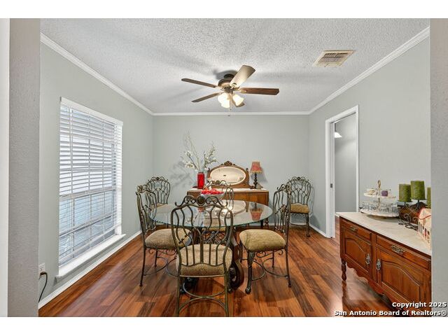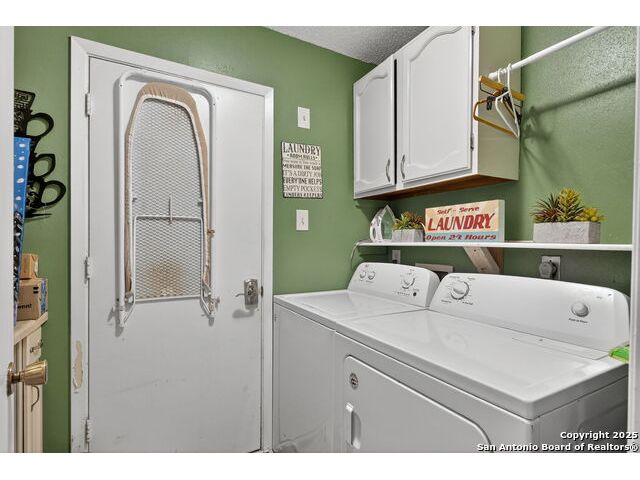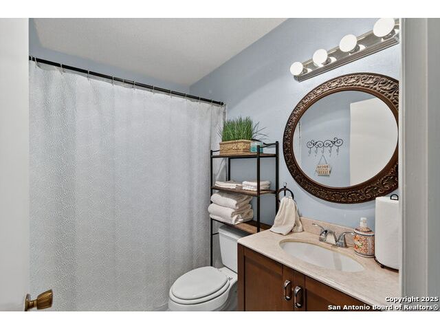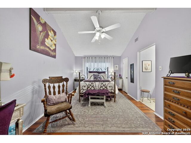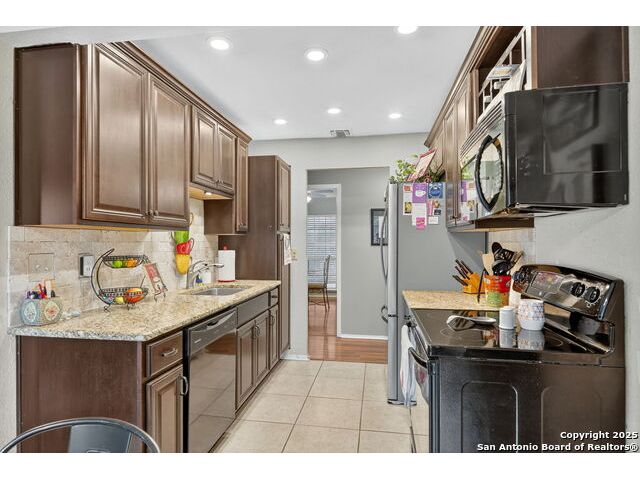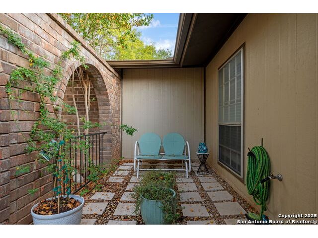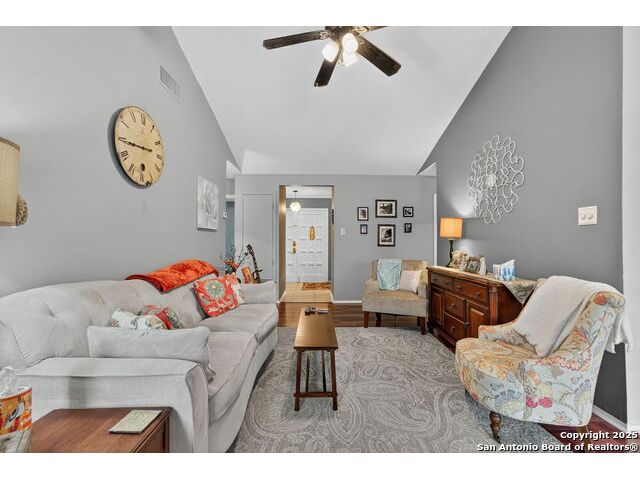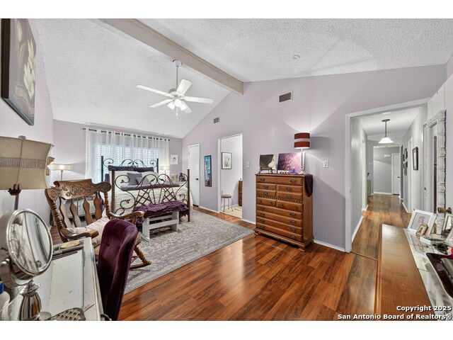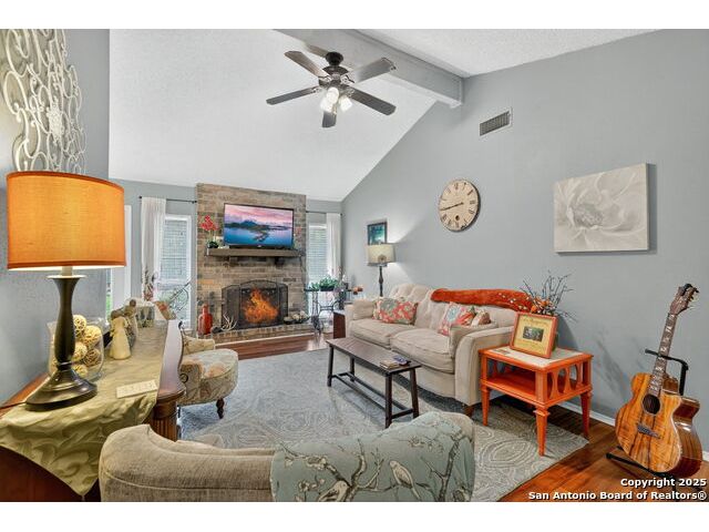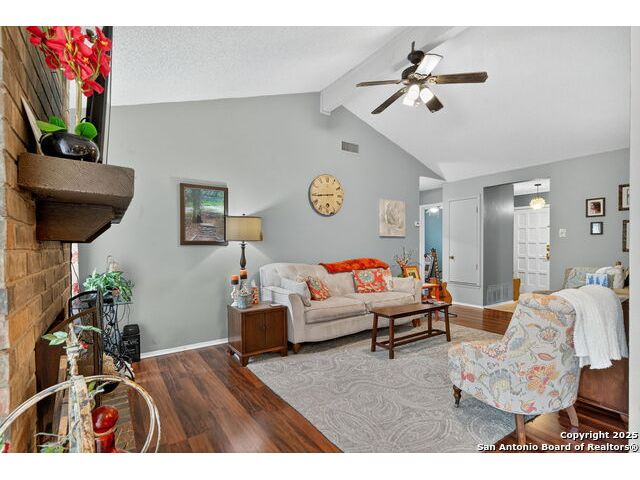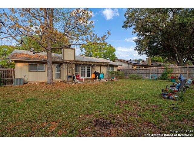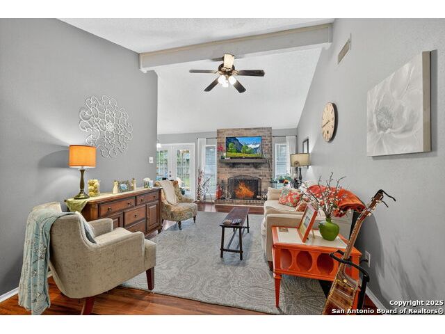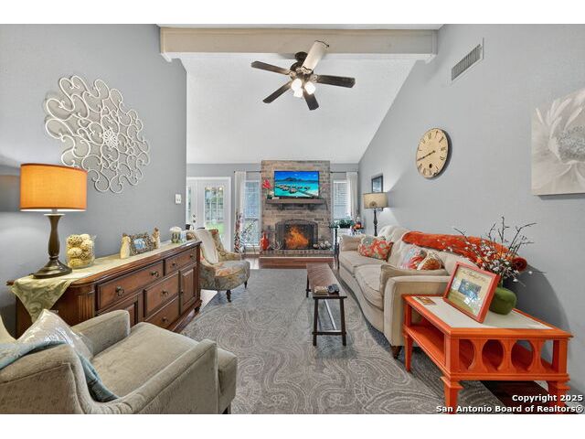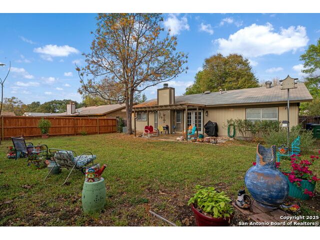 Set in the convenient Medical Center area of northwest San Antonio, this single-story home at 6835 Hogans Trail blends thoughtful updates with a relaxed everyday feel. The living room offers a vaulted ceiling with an exposed beam and a brick fireplace that adds warmth and character. The kitchen features granite countertops, tumbled-stone backsplash, recessed lighting, upgraded fixtures, and a clear view toward the backyard through French doors. All rooms throughout the home include updated light fixtures, giving each space a clean, refreshed look. Bedrooms have updated flooring, and both bathrooms are well-maintained, including an updated vanity in the primary suite. The home also includes a newer water heater and a newer garage door opener for added peace of mind. Outside, the covered patio and pergola-style setting with string lights create a comfortable place to unwind. The fenced backyard sits on an approximate 7,405 sq ft lot with mature trees that offer shade and privacy. A two-car garage and a full-size laundry room add practicality to the layout. The location offers quick access to major local destinations: roughly 5 minutes to Methodist Hospital, 7 minutes to University Hospital, 8 minutes to H-E-B, and about 10 minutes to Loop 1604 or I-10. Schools include Leon Valley Elementary (about 1.0 mi), Rudder Middle School (about 1.6 mi), and Marshall High School (about 0.4 mi). Dining, parks, grocery options, and everyday services are all nearby, making daily errands simple and convenient. With its upgrades, generous yard, and close-in Medical Center location, this home offers comfort, convenience, and an inviting layout in one of San Antonio's most accessible areas.