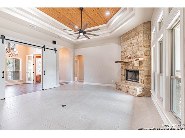 Say hello to your dream Texas ranch lifestyle! Nestled on 1.61 acres of pure country charm, this 2023 custom-built, 4 bedroom, 3.5 bath beauty brings together modern comfort, wide-open space, and the peaceful vibes people move to Adkins for. Mature trees, a fresh build, and thoughtful design-this home checks every box and then some. Step inside to bright, open living areas and 100 percent tile flooring throughout (kid-proof, pet-proof, life-proof-truly!). The kitchen, dining, and living flow together with a great rocked fireplace for effortless entertaining. The primary suite sits privately on its own side of the home, and here's the best part everyone loves: One of the secondary bedrooms has its OWN full bathroom! Perfect for a teen suite, guest suite, MIL setup, or anyone who deserves their own space. And now...the showstopper. A/C-cooled with a mini split 20x30 shop! It was used as an online boutique, this space is ready to transform into whatever you dream-home business, workshop, gym, studio, hobby space, man cave, she shed, or all of the above. With an attached covered parking awning, you've got extra room for vehicles, trailers, toys, projects, or equipment. The property is mostly fenced, beautifully shaded with mature trees, and includes a sprinkler system for easy maintenance. Add in GVEC electricity, La Vernia ISD, no city taxes, and quick access to the new Farmhaus restaurant, and you've got the perfect mix of convenience and country living. Still protected under the builder's 2-10 warranty, this home delivers that "new home confidence" without the wait. Modern ranch vibes, tons of usable space, an incredible shop, and a standout layout-this Adkins gem is ready to make your next chapter unforgettable.