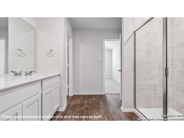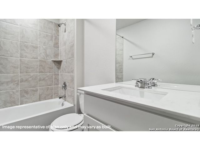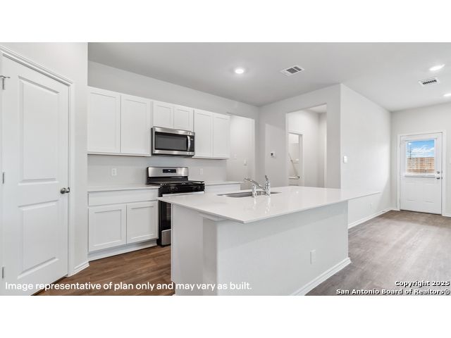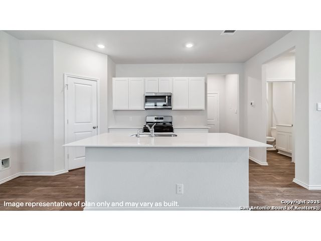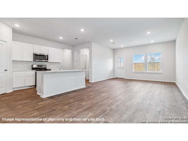 Introducing The Madison, a two-story home featured in Hunters Ranch in San Antonio, TX. This floor plan offers 2 classic exteriors, 2-car garage, and a full yard landscaping and irrigation package, ensuring that your home looks its best every single day. Inside this 5 bedroom, 3 bathroom home, you'll find 2489 square feet of open-concept living. A long entryway leads to a blended dining area, gourmet kitchen, and living room, perfect for entertaining and every day living. Your kitchen includes quartz counter tops, stainless steel appliances, shaker style cabinetry, and a grand kitchen island, complete with a roomy single basin sink and quartz breakfast bar. The corner pantry is spacious and includes plenty of built-in shelving. With a secondary bedroom and full bath located off the living room, this home offers private space for out-of-town guests. Head up the wide staircase to find a versatile loft, the private main bedroom suite, three secluded secondary bedrooms with carpet flooring, large windows and closets and a third full bath. The private main bedroom is an oasis, featuring a cozy sitting area and attractive ensuite bathroom. Enjoy quality quartz vanity tops, a tiled walk-in shower, a separate water closet, and a walk-in closet with plenty of space to get ready in the morning. Additional features include sheet vinyl flooring in entry, living room, and all wet areas, quartz bathroom counter tops, and our HOME IS CONNECTED base package. Using one central hub that talks to all the devices in your home, you can control the lights, thermostat and locks, all from your cellular device.