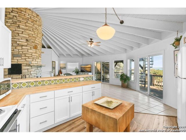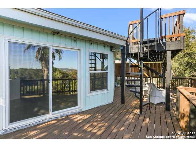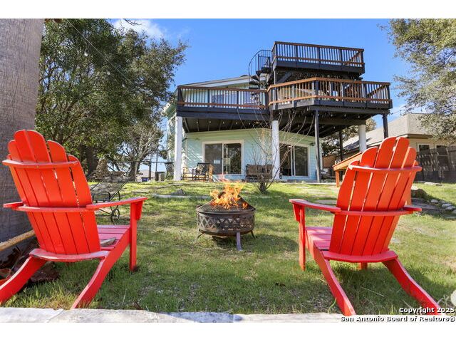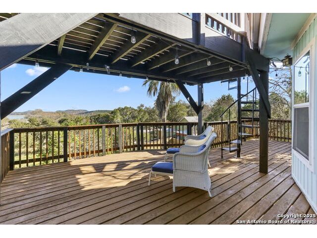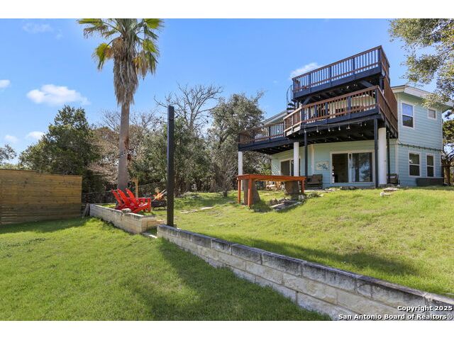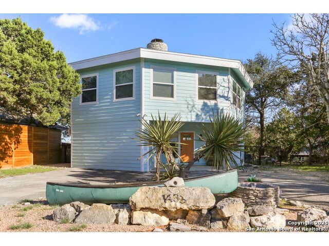 HUGE PRICE REDUCTION (originally priced @ $469,900). PROPERTY IS ALSO AVAILABLE FOR LEASE AND OWNER MAY CONSIDER A LEASEW/OPTION OR OWNER FINANCING (WITH BALLOON). Unique octagon shaped 3/2.5 two story home w/open floorplan, stone fireplace on BOTH levels & lots of room for family & friends! Upper level features the kitchen & large open living space, master bedroom w/private bath & sitting area plus an additional bedroom w/full bath & laundry. The oversize deck has a rooftop viewing area w/water & hill country views. The lower level offers an additional living area, kitchenette plus a separate entry to a separate bedroom w/half bath. Fenced yard. Home is available to show at any time - take a look & bring us an offer today!