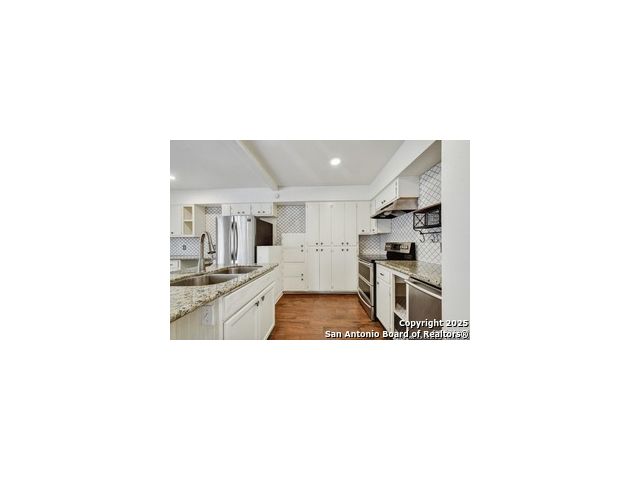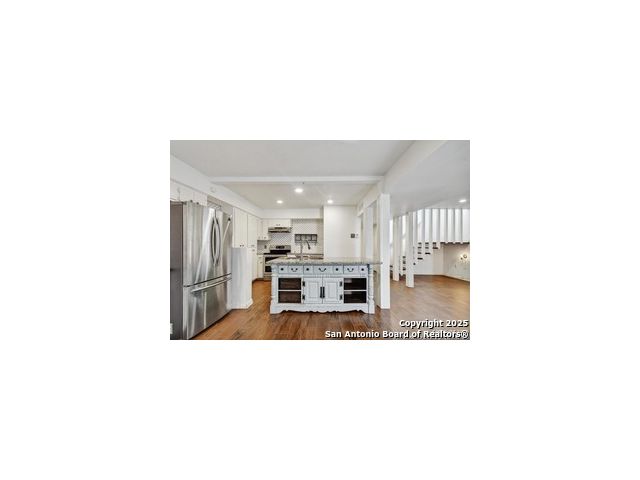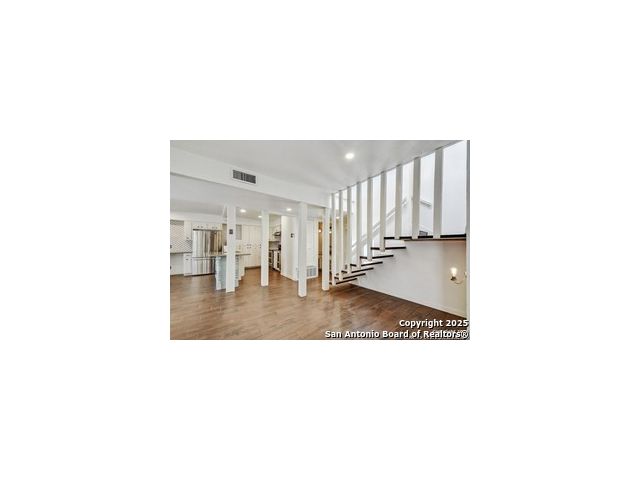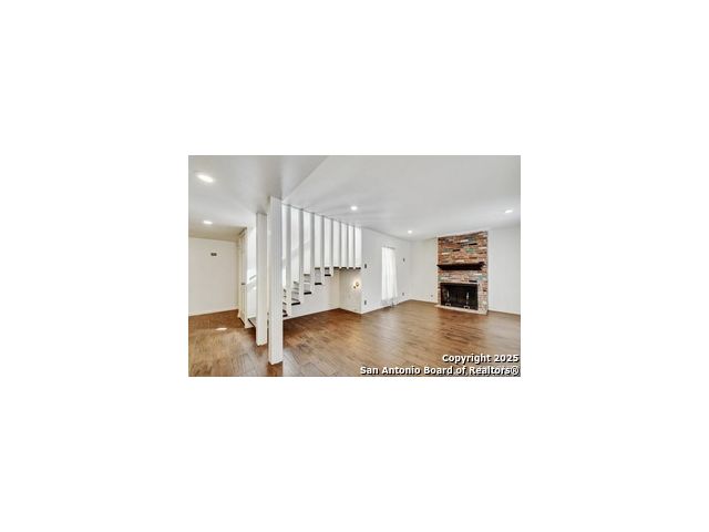 this condo has master down stairs offering privacy, kitchen has granite countertops, sleek stainless-steel appliances and living area has brick fire place. Upstairs, you will find two additional well-appointed bedrooms. This property includes a rear entry 2-car garage with opener. Located on a corner lot in beautiful Harmony Hills subdivision between San Pedro and Blanco rd.