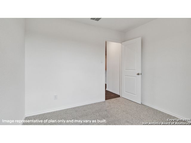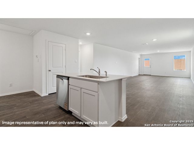 The Estero is a charming one-story home featured in Redbird Ranch in San Antonio, TX. Featuring 2 classic front exteriors, this 4 bedroom, 2 bathroom home also offers 1586 square feet of living space and a 2-car garage. A front porch (per plan) welcomes you into the home and opens to the gourmet kitchen which includes quartz counter tops, shaker style cabinets, stainless steel appliances and an open concept floorplan with the kitchen flowing seamlessly into the dining room and living room. The main bedroom has an attractive ensuite bathroom that features a quartz vanity countertop, shaker style cabinetry and a spacious tiled walk-in shower. Enjoy additional storage with a large walk-in closet in the primary bedroom. Your secondary bedrooms all feature quality carpet flooring and a closet, and can be used as bedrooms, offices, work out spaces or other bonus rooms. The possibilities are endless with The Estero floor plan. Additional features include sheet vinyl flooring in entry, living room, and all wet areas, quartz counter tops in all bathrooms and HOME IS CONNECTED base package. Using one central hub that talks to all the devices in your home, you can control the lights, thermostat and locks, all from your cellular device.