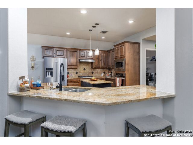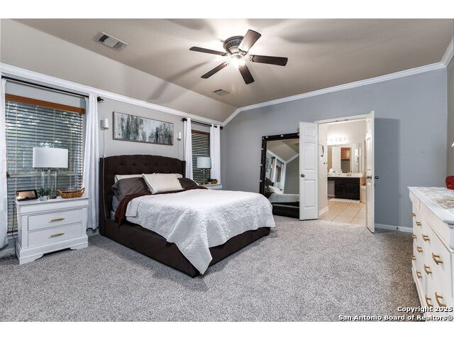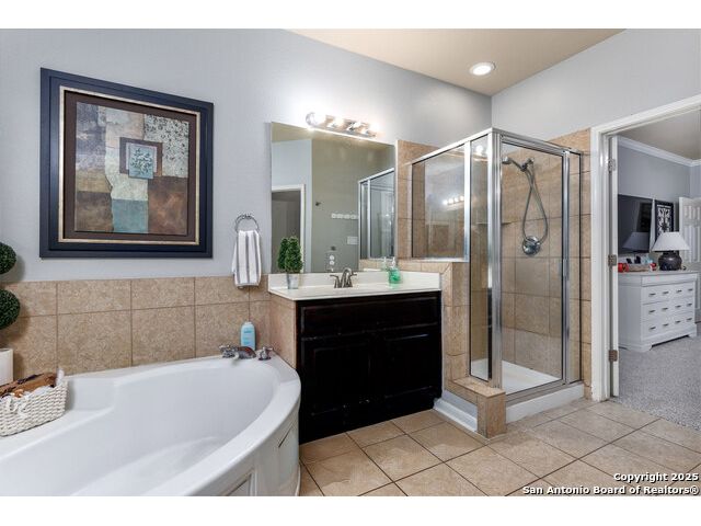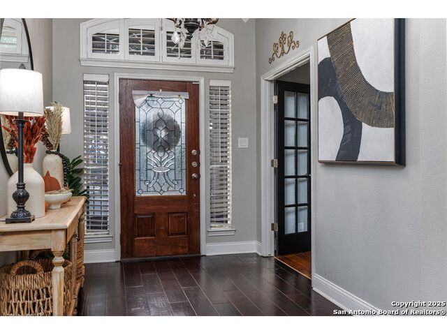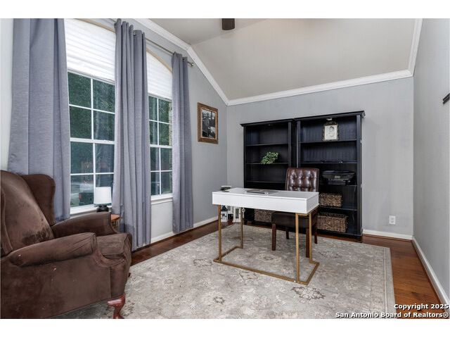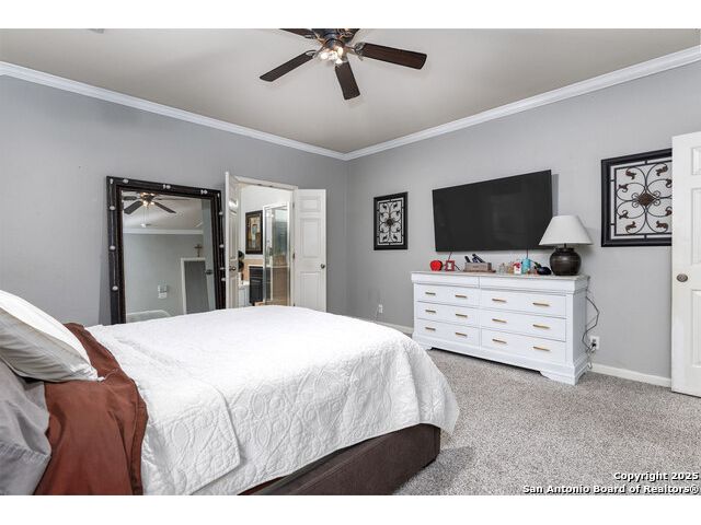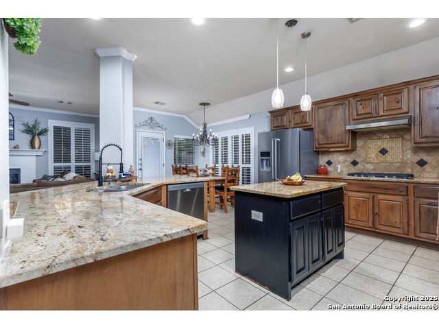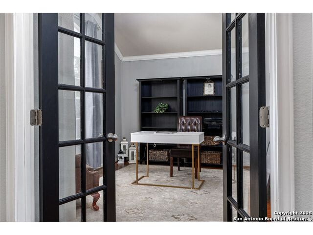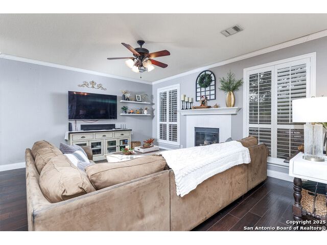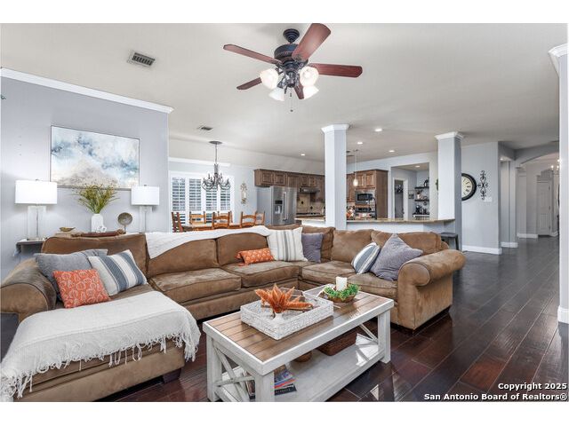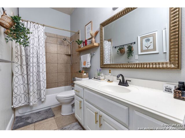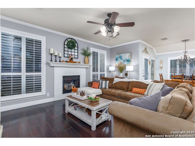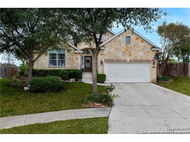 Beautiful 4bedroom/2.5 Bath, 1.5 Story home in the highly sought-after, gated community of Enclave at Sonoma Ranch is situated on a Cul-de-sac on .34-acre lot on a greenbelt. This beautifully designed 1.5-story home offers the perfect blend of comfort, and convenience. From the moment you enter, you'll be captivated by the glass-door study, ideal for a home office or quiet bedroom retreat. The open-concept formal living and dining areas flow seamlessly into the inviting family room, complete with a charming stone fireplace and large windows framed with plantation shutters that overlook the backyard. The chef's kitchen is a culinary dream, featuring a gas cooktop, granite countertops, and 42" cabinetry that provides ample storage and style. The spacious primary suite is a true sanctuary, privately tucked away from the secondary bedrooms to create a peaceful retreat. 4th bedroom is converted into a dressing room with solid wood shelving that can easily be converted back into a bedroom. Upstairs, the expansive game/media room is designed for entertaining, complete with a half bath. It's the perfect space for hosting movie nights, game days, or family gatherings. The home is perfectly situated in a gated community with quick and convenient access to Loop 1604, I-10, and premier shopping and dining at La Cantera, UTSA, Fiesta TX, Golf at La Cantera Resort, and major employers. This move-in-ready gem combines style, space, and functionality, offering exceptional value in one of the area's most sought-after neighborhoods. Don't miss the opportunity to make this stunning home your own!