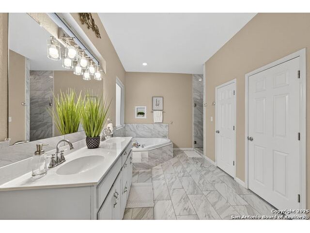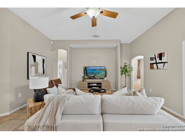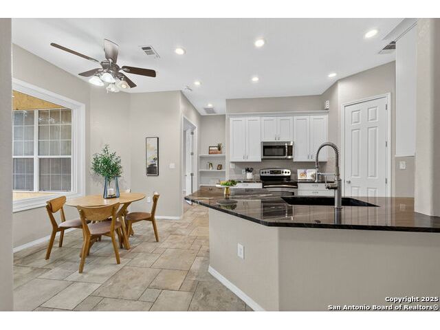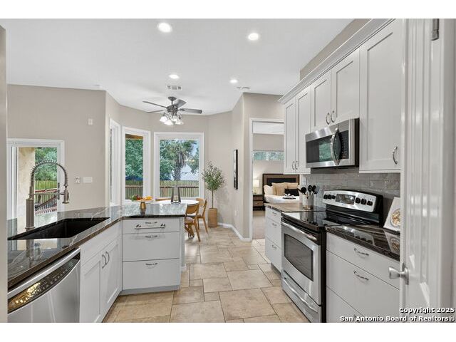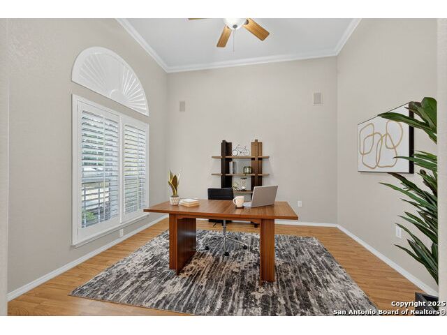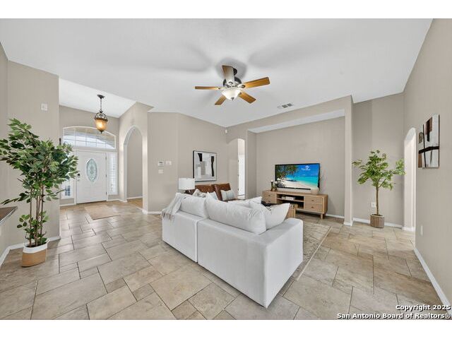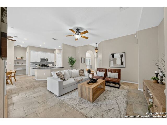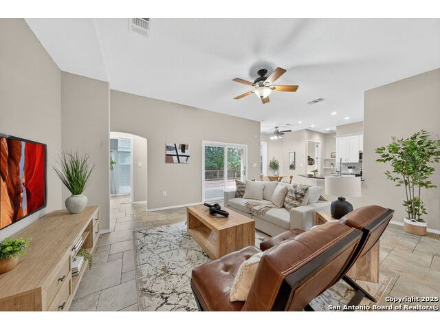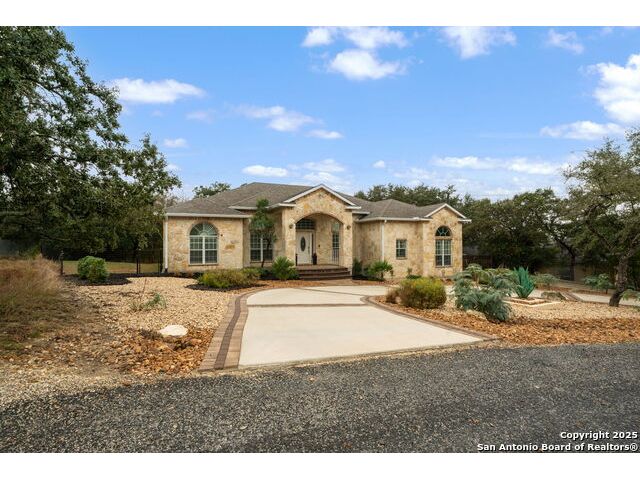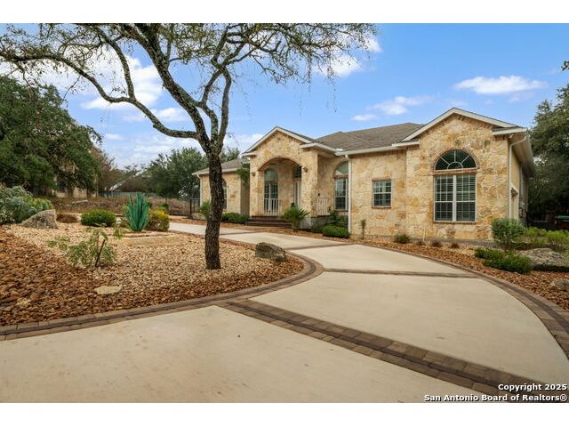 STUNNING 1-OWNER, 1 Story home with 4 bedrooms, 3 recently renovated bathrooms, and a gorgeous Study! 10 and 12 foot ceilings throughout create a sense of openness and space! This unicorn GEM is nestled in the heart of coveted Scenic Hills Estates. Trees, deer, and rolling hills adorn this Texas hill country neighborhood. Custom, one of a kind circular driveway is less than a year old, and includes commercial grade built-in electrical lighting, creating a beautiful, warm and inviting appearance at night. Created and installed by a professional landscape architect company. Very low maintenance and water saving for a yard! As you step through the front door, the light-filled foyer offers a welcoming glow that leads into a spacious, open-floor plan. Living area with vaulted ceilings make an open, airy environment. Upgraded to high quality energy efficient windows, adorned with top quality, adjustable, plantation shutters. Rich hardwood floors and custom tile make for easy cleaning in the high traffic areas. The recently renovated gourmet kitchen is a chef's dream: granite countertops, stainless-steel appliances, ample cabinetry, perfect for casual dining, prepping, or gathering with friends. The primary suite indulges you with generous proportions, a spa-style ensuite with dual vanities, massive shower, and a huge corner jetted garden is tub perfect for relaxing with a glass of wine and some candles after a long day. Big walk-in closet with built-in shelving. Two additional well-sized bedrooms on the opposite side of the house from the primary suite, and two pristine baths provide comfort and privacy for families or guests. Step outside to your private oasis: a professionally landscaped yard with mature trees, a covered patio for alfresco dining, and plenty of room for a future pool or outdoor living upgrade. My Q smart lighting and garage door opener. Energy-efficient upgrades add premium value. Nest Smart thermostat. Kinetco water softener and reverse osmosis system to fridge and ice maker. Located just minutes from dining, shopping, and top-rated schools - this property offers the perfect blend of private, peaceful, tranquility with convenience, and style. This house is as gorgeous in person as it is in the pictures!