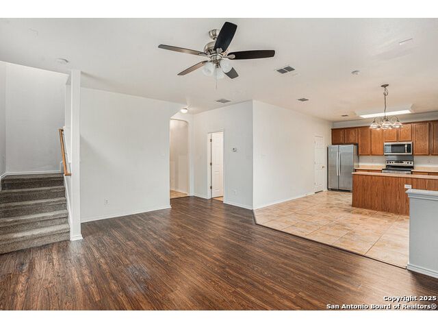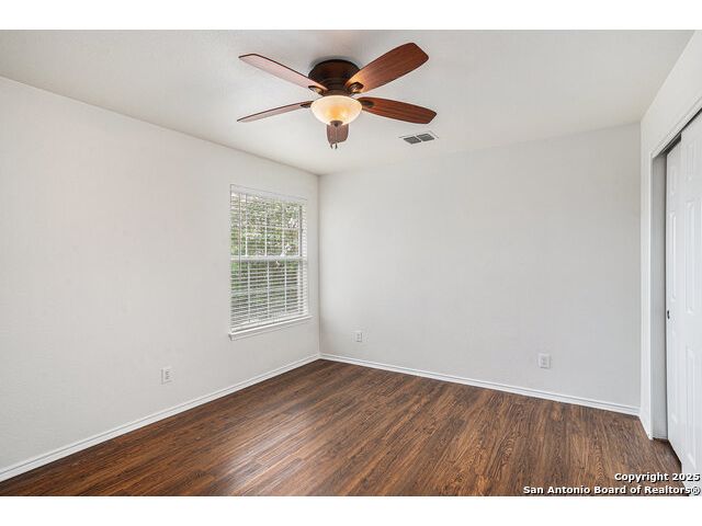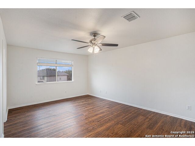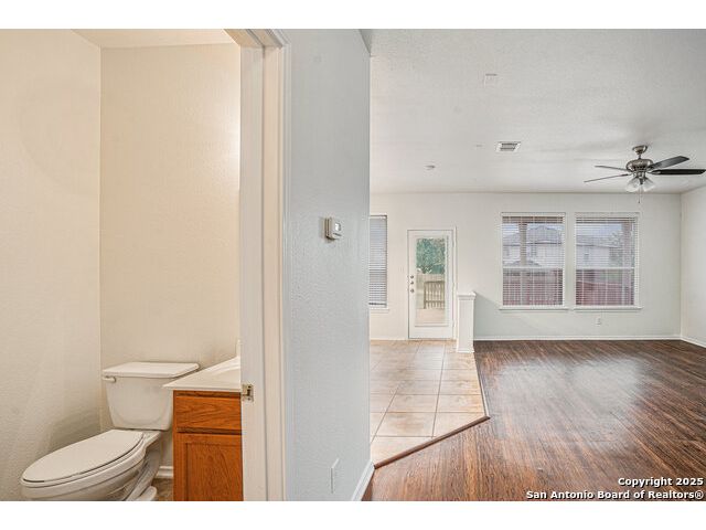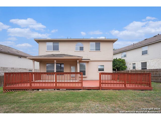 Welcome home to this beautifully maintained 4-bedroom, 2.5-bathroom home located in the highly sought-after Alamo Ranch community. Step inside to find laminate flooring throughout, creating a warm and inviting atmosphere, while durable tile floors in the kitchen and bathrooms offer easy maintenance. At the front of the home, a dedicated front office with French doors is perfect as a home office or study. The kitchen's open feel makes everyday living a breeze. All four bedrooms are housed upstairs. The primary suite offers a peaceful retreat with a private full bath that includes a garden tub and a standing shower. Enjoy Texas evenings on the back patio, ideal for relaxing or hosting outdoor get-togethers. Located in a quiet, well-established neighborhood with easy access to Loop 1604, shopping, dining, and schools-this home is move-in ready! Schedule your showing today!