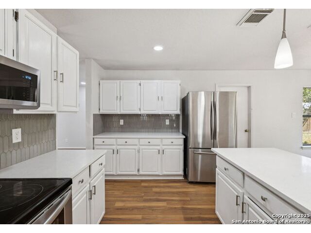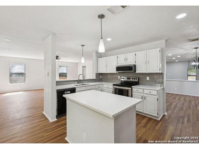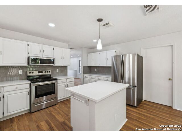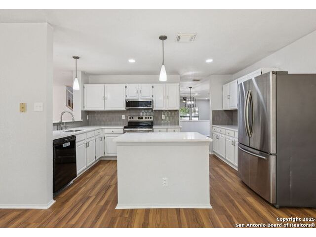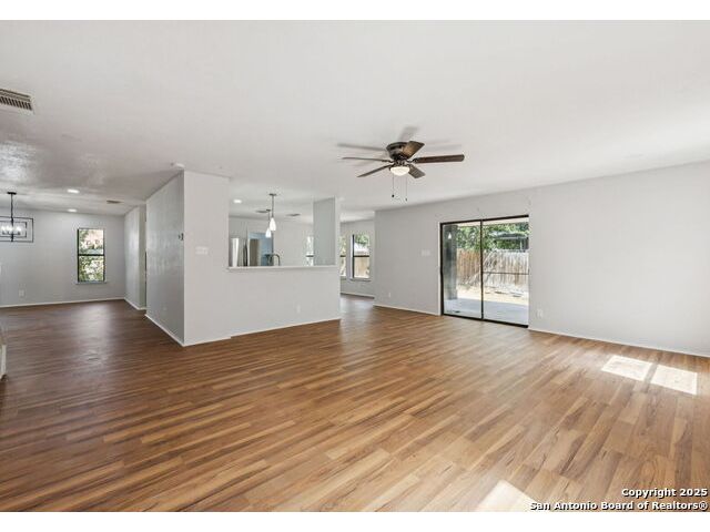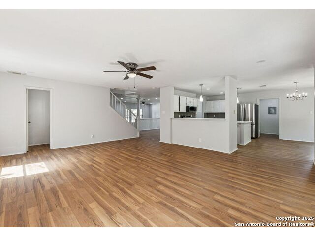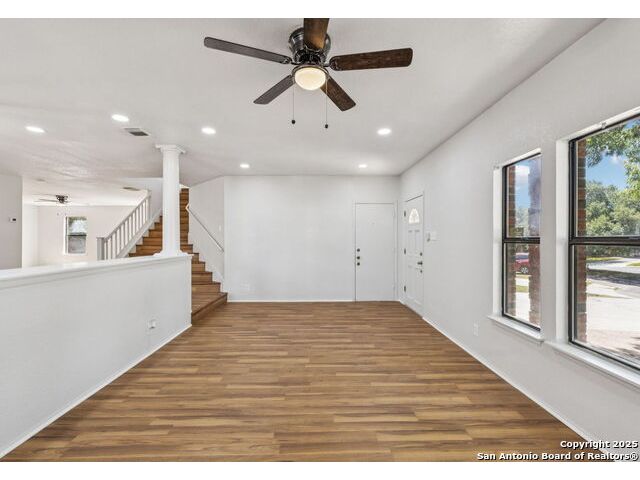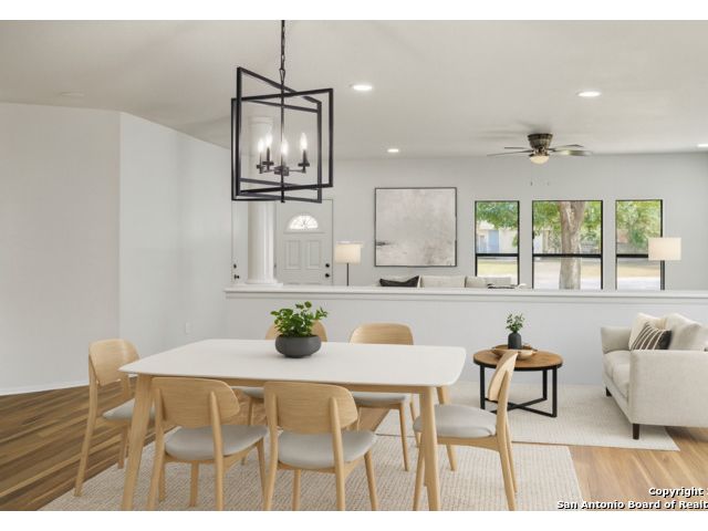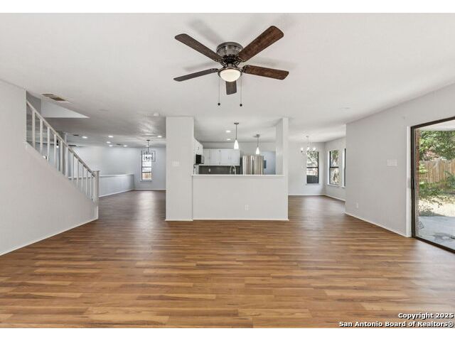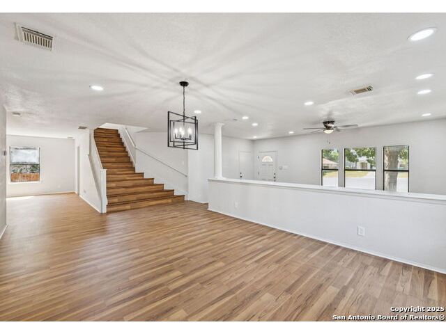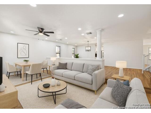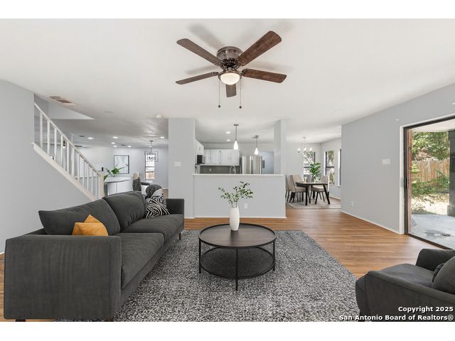 Spacious and beautifully updated, this 4-bedroom, 2.5-bath home is tucked away on a quiet cul-de-sac and offers an abundance of living space with 3 living rooms and a loft. Recent updates include fresh interior paint, new flooring, new appliances, kitchen cabinets, updated bathrooms, recessed lighting throughout the home, and stylish modern fixtures. The island kitchen features a breakfast bar, sunny dining nook, and a bright window overlooking the backyard. This home also includes a gourmet kitchen ideal for any cooking enthusiast, a large dining area, a generous game room, and an expansive backyard perfect for outdoor enjoyment. The roof is approximately 2 years old, offering added peace of mind. Located in a desirable community featuring a HUGE swimming pool, clubhouse, and playground, this home is ideal for both everyday living and entertaining. Easy access to Randolph AFB (about 5 miles), Brook Army Medical Center (about 8 miles), major highways, shopping, restaurants and lots of entertainment.