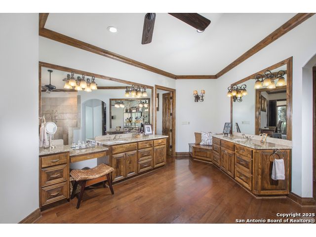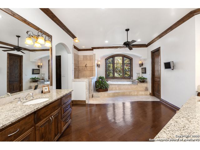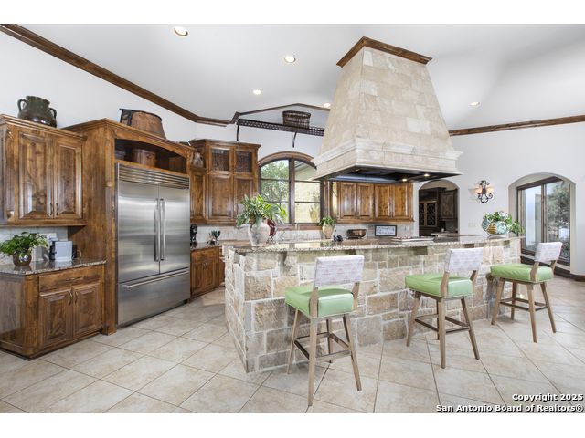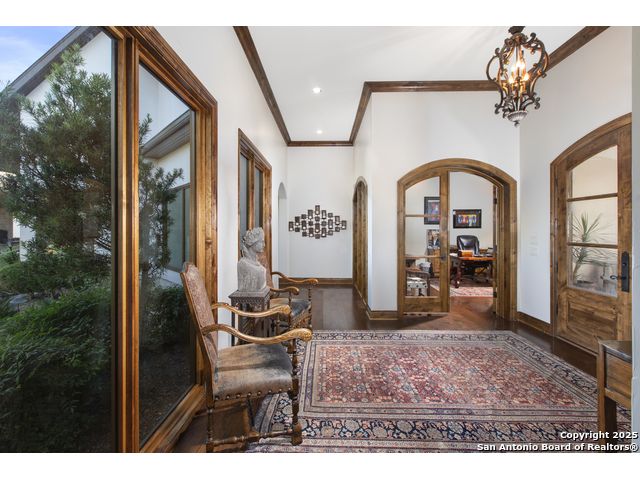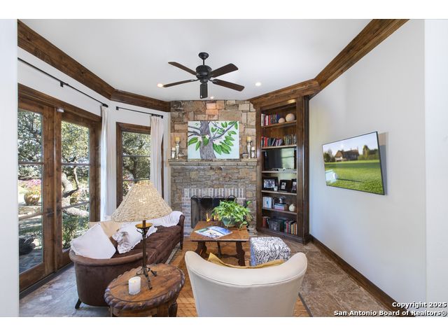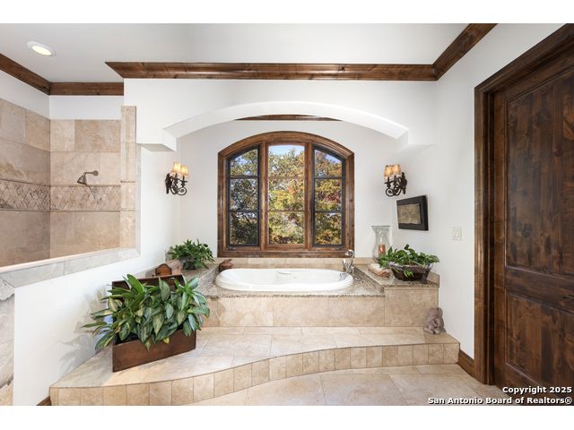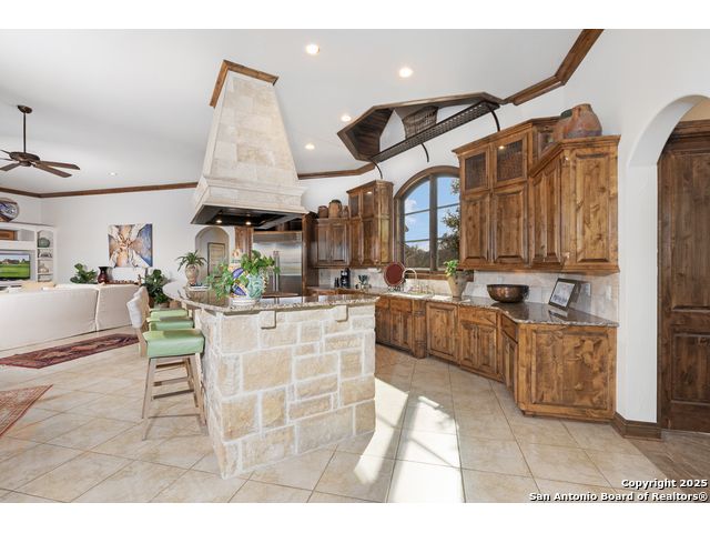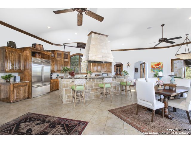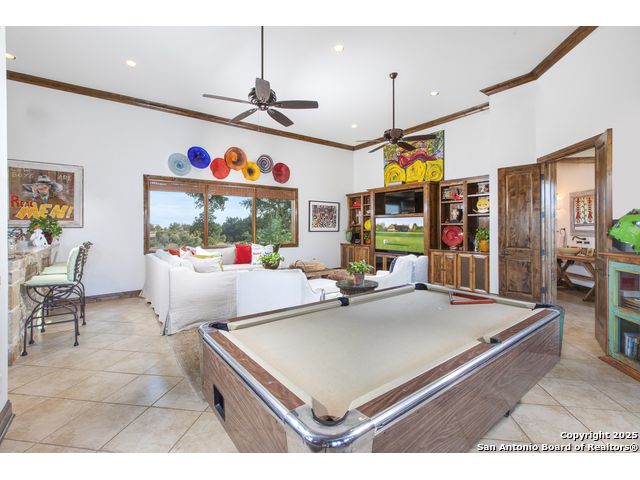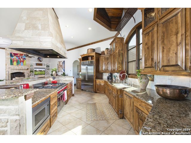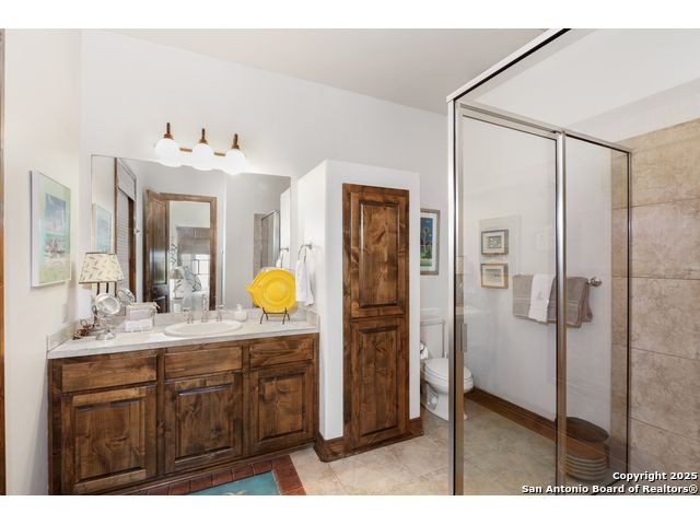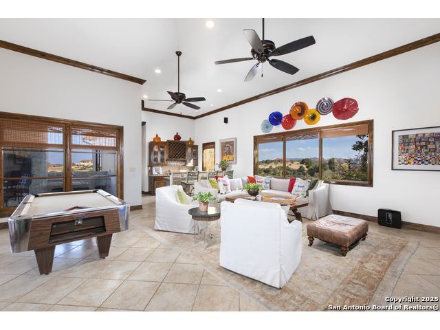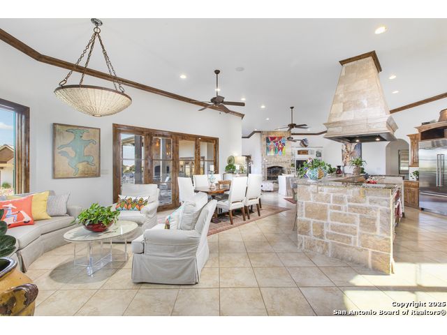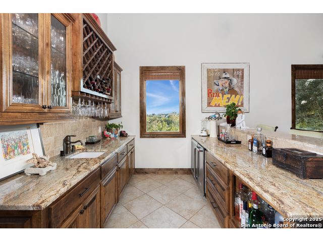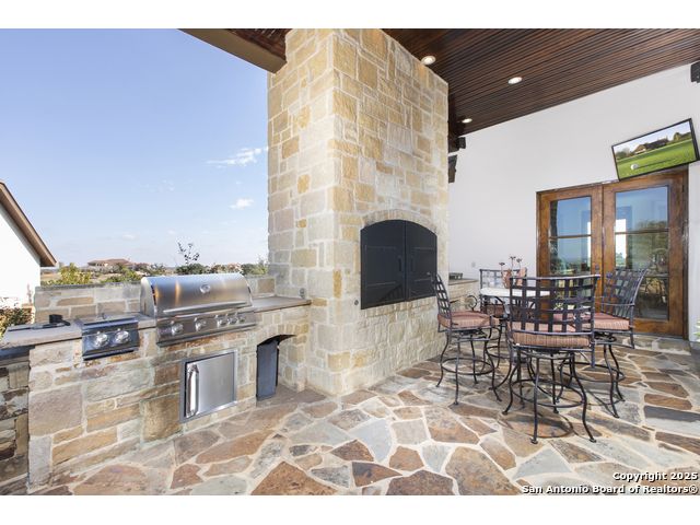 165 Painted Sky is an Incredible Hill Country Custom Home with jaw dropping views from every window located in The Reserve at Falling Water, an exclusive private gated neighborhood between Comfort and Fredericksburg. This majestic home features a massive outdoor entertaining area overlooking 12+ acres with panoramic views in every direction. You'll enjoy the refreshing beach entry pool and hot tub, deep covered gallery porches and stone decking for entertaining, The home offers 4 Bedrooms in the Main Dwelling with an additional one bedroom Casita. The Casita is fully functional w/Kitchen, Living Area, Separate Bed & Bath + laundry. The custom Home was built by Buffalo Homes featuring detailed finishes such as Masonry fireplaces, wood & tile floors, soaring ceilings, abundant stonework, solid wood doors and countless other custom detailing. Built for entertaining in the classic Hill Country style, the Great Room & Dining area are some of the perfect areas for gatherings. The chef-inspired Kitchen is open w/custom granite countertops, gorgeous views, plentiful cabinets, stone-clad center island & high end appliances such as Subzero and Wolf. The commanding Primary Bedroom suite is a spacious restful retreat w/fireplace and doors opening to a covered patio to enjoy the views. The luxe spa-inspired bath offers dual sinks overlooking the views, soak tub and expansive closets w/built-ins. 3 additional comfortable bedrooms round out the Main House. You'll have plenty of room to hike and explore this estate w/trails and spectacular view vantage points. The neighborhood offers a Wildlife Exemption and a community water system that is conveniently located w/close proximity to world famous Fredericksburg, Boerne and Comfort. This timeless Hill Country Estate is the epitome of luxury living.