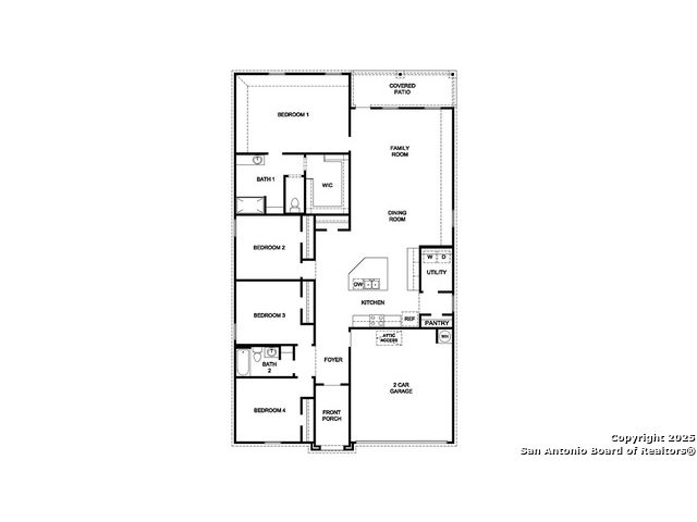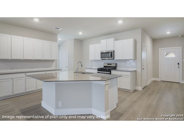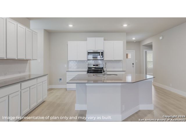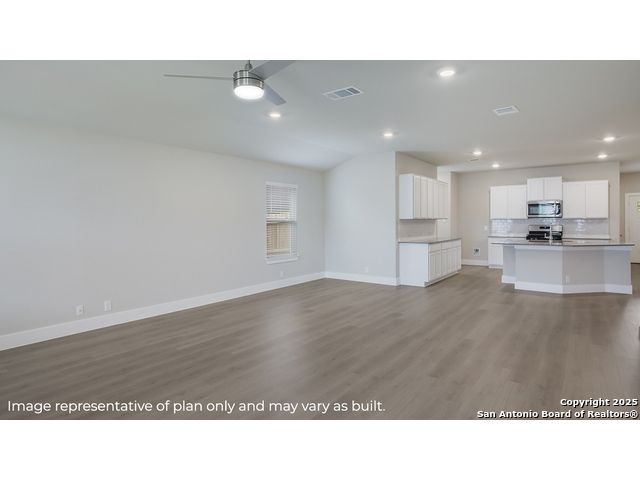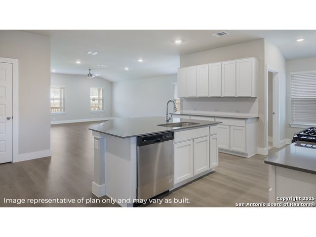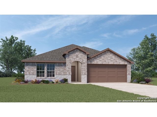 Step into The Kingston floor plan at Brookstone Creek located in San Antonio, TX, a single story home offering 4 bedrooms and 2 bathrooms. This home also features 2 classic front exteriors, a 2-car garage and 2024 square feet of comfortable living. The Kingston features and open-concept layout that blends together to form the perfect space for everyday living. An inviting foyer welcomes you into the kitchen, complete with a natural gas cooking range, stainless steel appliances, subjway tile backsplash, quartz countertops and shaker style cabinets. The kitchen island faces the dining area and living room and offers a deep, single bowl sink and extra countertop space, perfect for bar seating. The private main bedroom suite is located off the living room towards the back of the home and features quality carpet, large windows and a ceiling fan. Your connected bathroom is an oasis, complete with dual vanity sinks, cultured marble countertops, a tiled walk-in shower, shaker style cabinets and a separate room for the toilet. You'll have all the space you need to get ready in the morning with a large walk-in closet. You'll find quality carpet and closets in all of your secondary bedrooms, which can also be used as offices, play rooms or other bonus rooms. Head out the back door located off the living room to find the rear covered patio (per plan) and full yard landscaping & irrigation. Additional features of The Kingston include hard surface flooring at entry, downstairs, halls, living room, kitchen, and dining/breakfast area, tile in all bathrooms and utility room, pre-plumb for water softener loop and faux wood window blinds throughoutt the home. This home also includes our HOME IS CONNECTED base package. Using one central hub that talks to all the devices in your home, you can control the lights, thermostat and locks, all from your cellular device.