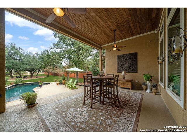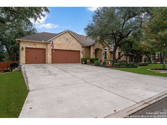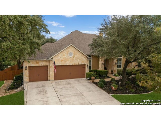 Tucked within the prestigious, gated enclave of Balcones Creek, this exceptional single-story residence pairs refined Hill Country architecture with an effortlessly elevated lifestyle. Set on over half an acre beneath a canopy of mature trees, the home offers the rare blend of dual primary suites, an expansive private yard, and resort-style outdoor living, creating a sanctuary designed for comfort, elegance, and ease. Inside, soaring ceilings, wide-plank wood flooring, and an open, airy flow welcome you into a home crafted for both everyday living and sophisticated entertaining. At the heart of the layout, the chef's kitchen shines with generous counter space, a large central island, stainless steel appliances, gas cooking, and seamless connectivity to the living and dining areas. A dedicated wine room adds a touch of luxury, perfectly positioned to serve as storage or easily transformed into an expanded walk-in pantry or additional storage space. The primary suite is impressively scaled, offering spa-inspired bath and dual walk-in closets, . Additional Master suite allowing for a multi-generational household or providing long-term guests unparalleled comfort and privacy. The home also features an extended utility room with additional counters and storage, a spacious study, and a coveted three-car garage. Outdoors, the property unfolds into a true Hill Country retreat. An expansive covered patio frames views of the beautifully landscaped yard, while the outdoor kitchen invites alfresco dining beneath the shade of mature trees. The focal point is the stunning in-ground pool and spa, perfectly designed for both quiet relaxation and memorable gatherings. With its thoughtful single-story design, dual primary suites, and entertainer's backyard, this home delivers a rare combination of luxury, practicality, and timeless Hill Country charm, all within the award-winning Boerne ISD and just moments from I-10, the new HEB at Lemon Creek, world-class amenities, and all that Boerne and San Antonio have to offer. Welcome to a residence that elevates everyday living into something extraordinary.