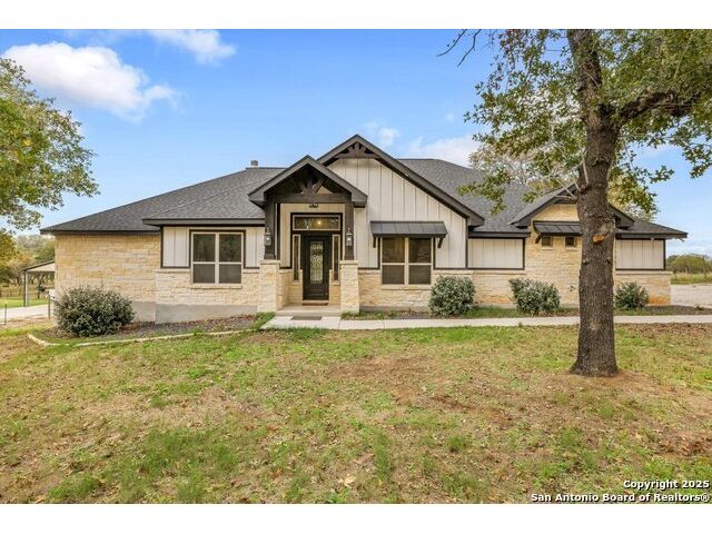 Experience the best of modern country living in this beautifully designed one-story home, perfectly situated in the highly desirable La Vernia ISD. Sitting on 1.28 private acres, this 2,598 sq ft property offers the space, comfort, and flexibility that today's buyers crave-while keeping everyday conveniences close at hand. Built in 2021, the home features 5 bedrooms, 3 full baths, and a dedicated office, giving your household plenty of room to grow and thrive. The spacious 5th bedroom/bonus room was created from part of the garage, offering a fantastic multi-use space for guests, hobbies, or a second living area-while still preserving storage space in the remaining garage section. This home is equipped with a tankless water heater, a whole-house charcoal/UV water filtration system, and a propane tank with lines to key appliances for smart, efficient living. There is a convenient 50-amp hookup right beside the home for RV's. Animal lovers will appreciate the separate fenced area beyond the privately fenced backyard-perfect for livestock or 4-H projects. Enjoy relaxing on summer days in the above-ground pool on a concrete patio just off the back porch. Come see why this property stands out from the rest..