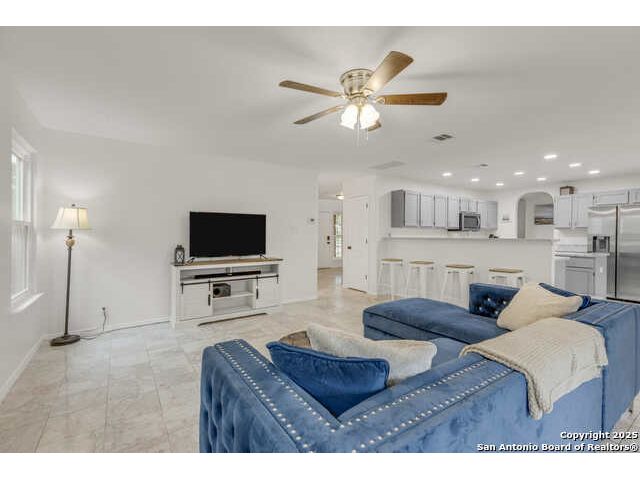 Experience refined living at 438 Tiger Hills-a thoughtfully upgraded 4-bedroom, 2.5-bath residence nestled against a tranquil greenbelt for unparalleled privacy. This elegant home showcases impressive enhancements, including new windows, a new A/C system, and fully paid-off solar panels, offering both elevated comfort and exceptional energy efficiency. Step inside to an inviting layout designed for effortless entertaining. The kitchen features generous cabinetry, granite counters, and comes complete with all appliances, providing a seamless move-in experience. Upstairs, a spacious game room serves as a versatile secondary living space-perfect for hosting, relaxing, or creating a private media retreat. The primary suite offers a serene escape with a large walk-in closet and a beautifully finished bath, while the additional bedrooms provide comfort and flexibility for family, guests, or a dedicated office. Outdoors, the private backyard opens to greenbelt views, delivering a peaceful setting ideal for outdoor dining or unwinding at the end of the day. Located minutes from premier shopping, dining, major highways, and Lackland AFB, this home blends modern upgrades with timeless appeal in one of West San Antonio's most convenient locations.