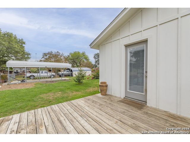 Welcome to your dream home in the heart of Lytle! This charming one-story home welcomes you with a bright, sun-filled living area that feels warm and inviting, an easy spot to relax, unwind, or gather with family after a busy day.The kitchen keeps things simple with white cabinetry and a functional layout. The primary bedroom is a peaceful retreat with its own bathroom featuring a shower and direct access to the backyard, perfect for savoring morning coffee, reading, or enjoying fresh evening air. Two additional bedrooms offer flexible space for family, guests, or a home office, making this home adaptable to your lifestyle. Outside, the corner lot gives you plenty of room to enjoy, with a deck designed for relaxing, entertaining, or simply soaking up the day. Located in the heart of Lytle, this home combines small-town charm with easy access to San Antonio, local schools, and shopping. This isn't just a house, it's a place to start your next chapter, make memories, and truly feel at home.