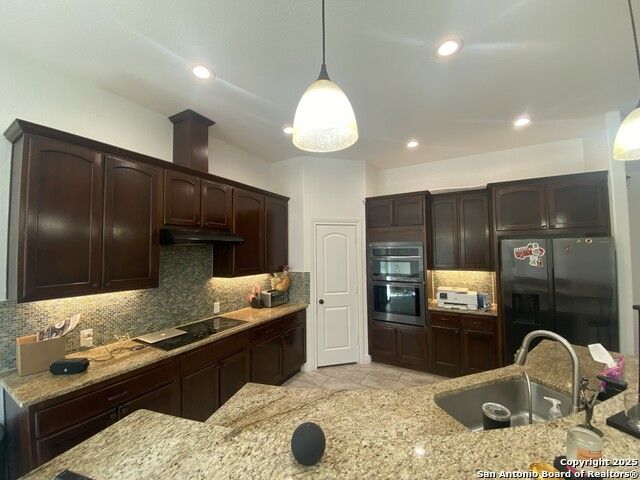 Great property with acreage close to the city without paying city tax and no HOA!! Custom built in 2020, this gorgeous 5 bedroom, 3 bath home sits on 1.18 acre. Upon entry, you are greeted with soaring trey ceilings and seamless tile throughout (no carpet!). Overlooking the expansive living room & breakfast nook, the open-concept kitchen features granite countertops & matching black stainless steel Samsung appliances. The four secondary bedrooms includes a guest en-suite, perfect for multigenerational families or a relaxing "escape" for your guests! The Primary suite includes a large walk-in closet and oversized waterfall shower. The oversized laundry room includes built-in cabinetry & granite countertops with a high quality water softener! Enjoy mornings and sunsets on your covered patio overlooking your private, tree-filled backyard! The lot is completely cleared with beautiful oak & cedar trees remaining for privacy. This backyard is looking for the perfect owner to make their own with a pool, garden, or simply to enjoy as-is!