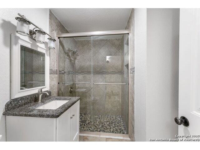 Move-in ready gem! This beautifully maintained 3-bedroom, 2-bath home with a separate office or potential 4th bedroom (1,620 sq. ft. of living space) is located in the highly sought-after Olmos/San Pedro Place Subdivision, just minutes from The Quarry and major San Antonio highways. Step inside to an inviting living area and enjoy the comfort of a recently renovated master bathroom, an upgraded kitchen with newer cabinets, granite countertops, modern fixtures, and updated lighting throughout. The home features a combination of tile and carpet flooring, offering both style and comfort. Outside, you'll love the huge backyard-perfect for family gatherings, weekend cookouts, and outdoor fun-complete with a convenient storage shed. With its open floor plan, thoughtful updates, and ideal location, this home has so much to offer. Come see it today before it's gone!