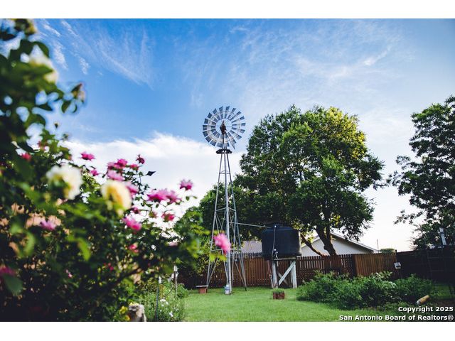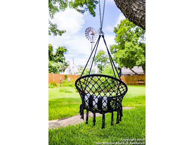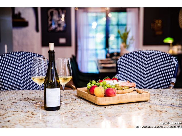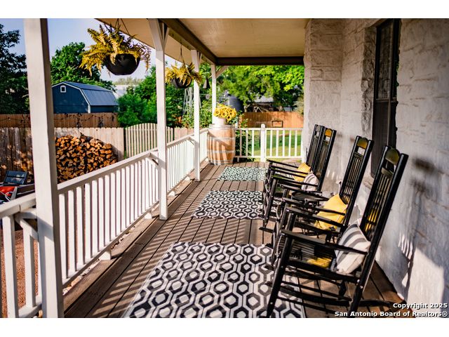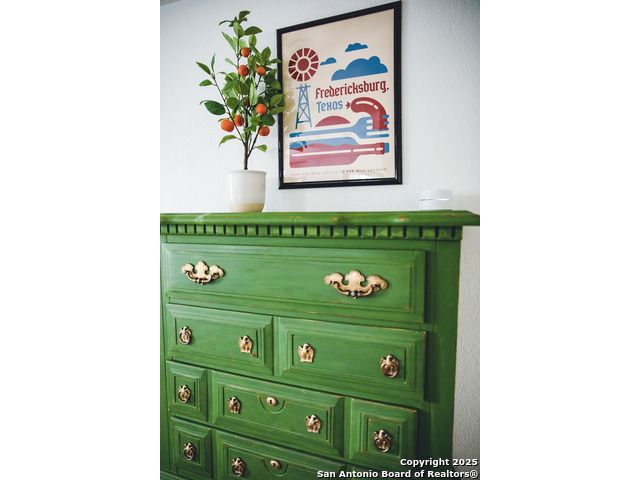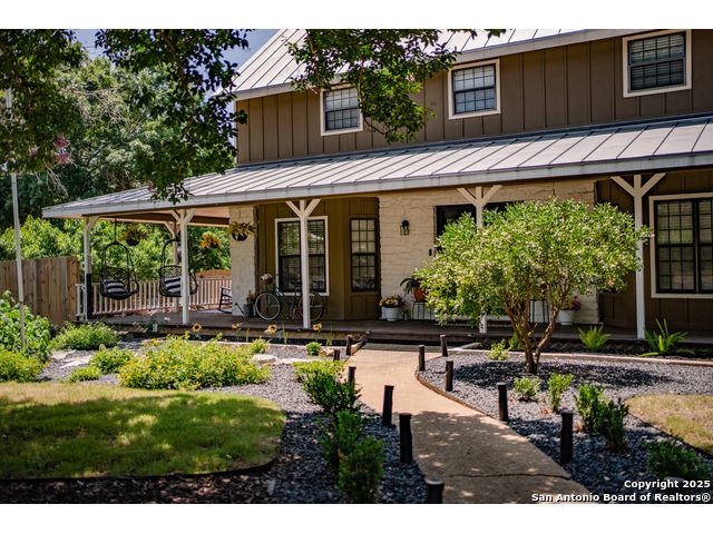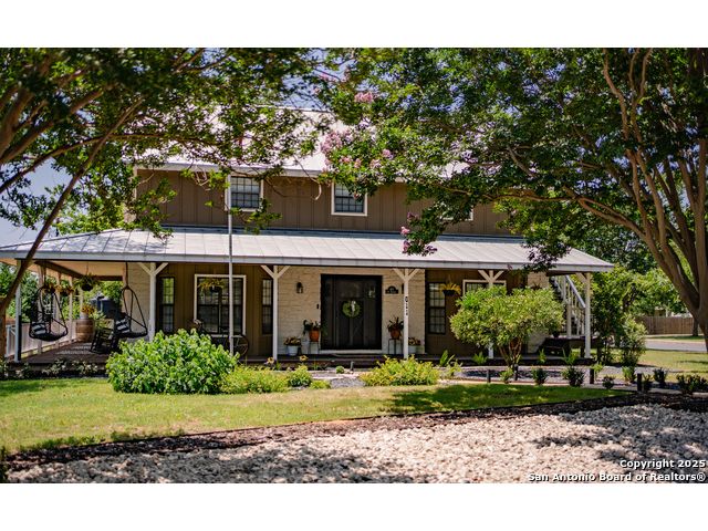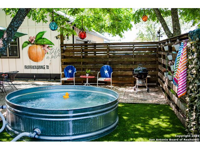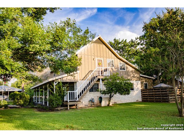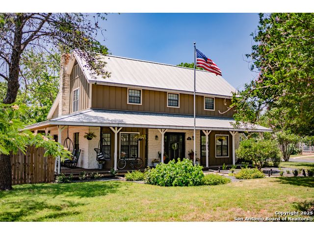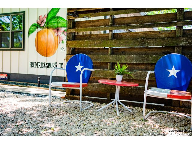 Discover this delightful Fredericksburg residence, ideally located just minutes from Main Street, boutique shopping, award-winning dining, and the heart of Texas Wine Country. Brimming with Hill Country charm, the home offers an airy, open layout filled with natural light and thoughtfully designed living spaces. Curb appeal abounds, welcoming you into a spacious home perfect as a full-time residence, weekend retreat, or high-performing vacation rental. The downstairs features a generous living area, dedicated dining room, and an updated kitchen with stainless steel appliances and granite countertops. Just off the kitchen is a bath, and office nook. The primary bedroom with en suite bath is also located on the main level for easy living. Upstairs, you'll find a large open bedroom and an additional bedroom with its own en suite bath-ideal for guests or family. Situated on an expansive lot, the property includes a three-car garage (with one bay outfitted as a workshop and a half bath), an attached carport, and an operating gym. For charm, a windmill connected to a rainwater collection system for irrigation. The generous outdoor space is perfect for entertaining, gardening, or simply relaxing under the wide Texas sky. Majority of furniture and decor can be sold with the property. This well-located Fredericksburg gem offers comfort, character, and exceptional potential-an opportunity not to be missed.
