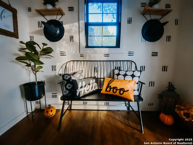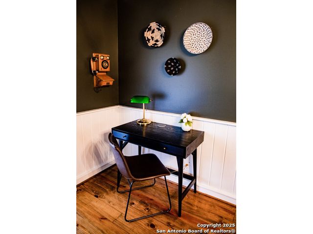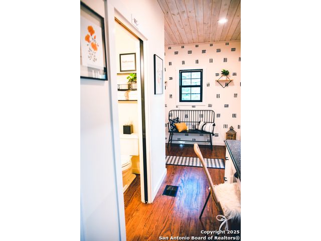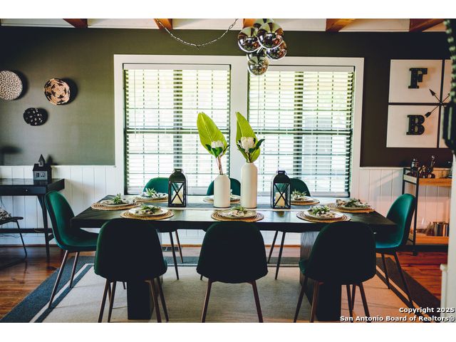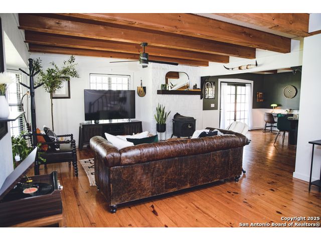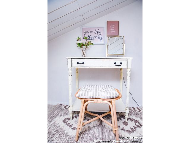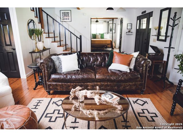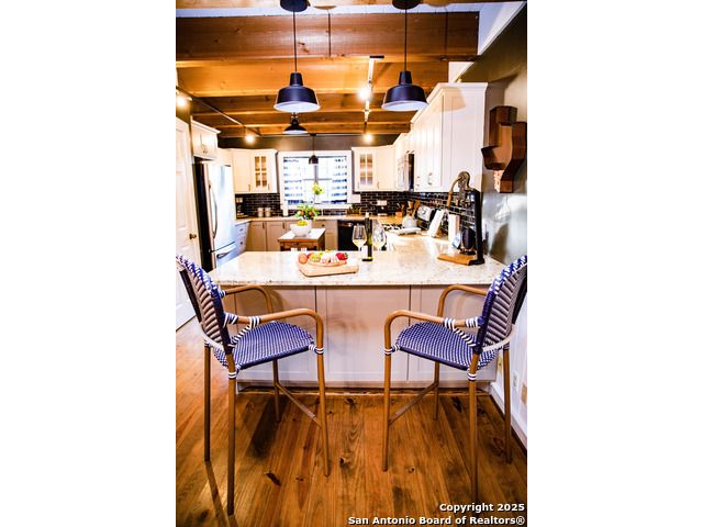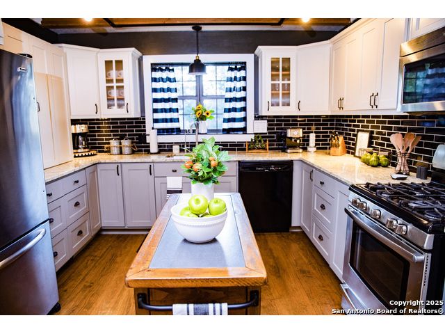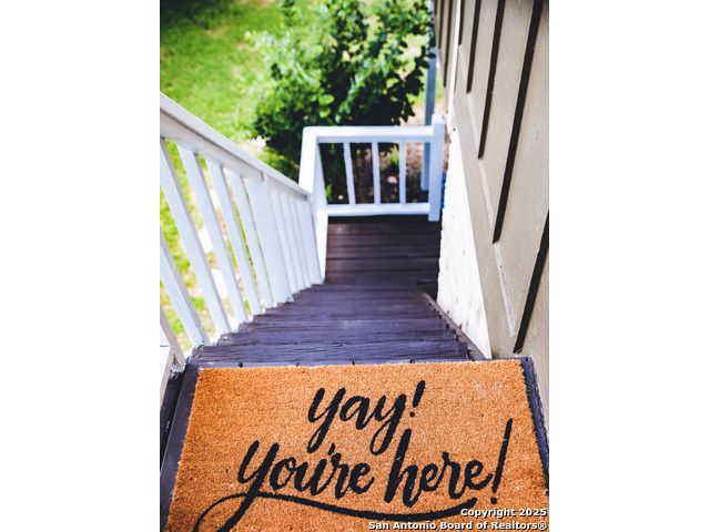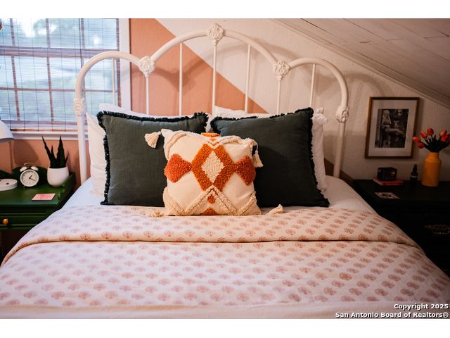 Discover this delightful Fredericksburg residence, ideally located just minutes from Main Street, boutique shopping, award-winning dining, and the heart of Texas Wine Country. Brimming with Hill Country charm, the home offers an airy, open layout filled with natural light and thoughtfully designed living spaces. Curb appeal abounds, welcoming you into a spacious home perfect as a full-time residence, weekend retreat, or high-performing vacation rental. The downstairs features a generous living area, dedicated dining room, and an updated kitchen with stainless steel appliances and granite countertops. Just off the kitchen is a bath, and office nook. The primary bedroom with en suite bath is also located on the main level for easy living. Upstairs, you'll find a large open bedroom and an additional bedroom with its own en suite bath-ideal for guests or family. Situated on an expansive lot, the property includes a three-car garage (with one bay outfitted as a workshop and a half bath), an attached carport, and an operating gym. For charm, a windmill connected to a rainwater collection system for irrigation. The generous outdoor space is perfect for entertaining, gardening, or simply relaxing under the wide Texas sky. Majority of furniture and decor can be sold with the property. This well-located Fredericksburg gem offers comfort, character, and exceptional potential-an opportunity not to be missed.