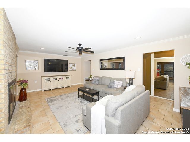 Golf course within the neighborhood, what a win! New roof! Solar panels. Partial new energy efficient windows. Elementary school 4 blocks away (1 mn. by car)!! Fresh paint; zero carpet. No popcorn ceiling! Be ready to enjoy the backyard oasis especially during the hot summer! Wet bar; main bedroom is downstairs with direct access to the pool. Living/Dining combination, family room with fireplace for those cool months and Florida room overlooking the pool and a way to enjoy the rainy & sunny days from indoors. Covered patio. Gutters. Mature trees. Recent electrical wiring! Goldfish pond. Sprinkler system. Oversized 2-car garage. Walk to all the shopping, dining, and entertaining within a few blocks. There is a voluntary HOA membership which offers pool, tennis, golf course, clubhouse, park/playground, jogging trails & bike trails. Great airbnb potential! Located behind The Forum. ONLY 4 miles to Randolph Air Force Base without having to deal with Hwy. 35 or Loop 1604.