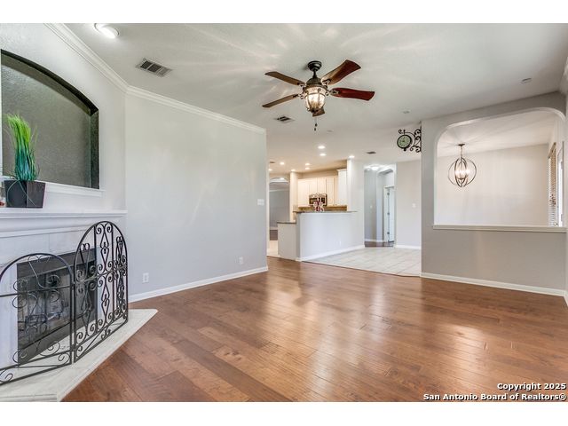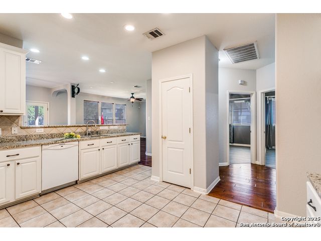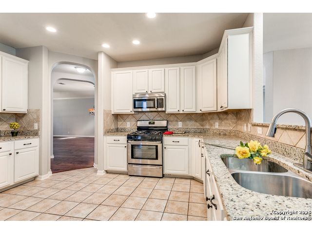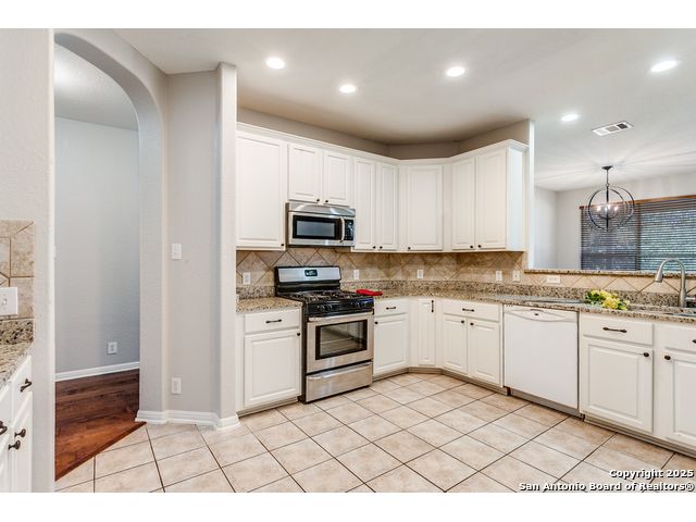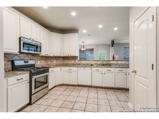 OPEN HOUSE FRIDAY 12/05/25 FROM 3 to 5pm! Tucked away in this quiet and desired neighborhood in the heart of Stone Oak you will find this beautiful single story home overlooking a greenbelt. The inviting unique floorplan offers 3bd plus office/study, 2 living areas with a cozy corner fireplace in the family room, 2 dining areas, wood, tile and laminate flooring, The large kitchen is the heart of the home with granite counters, gas cooking and ample cabinet and counter space. New HVAC System in 2024. The covered and uncovered patios invite to sipping your morning coffee or relaxing with a glass of wine at sunset. Exemplary rated schools to boot. Hurry and come see this gem before it is gone. Going once, twice...