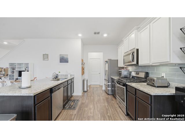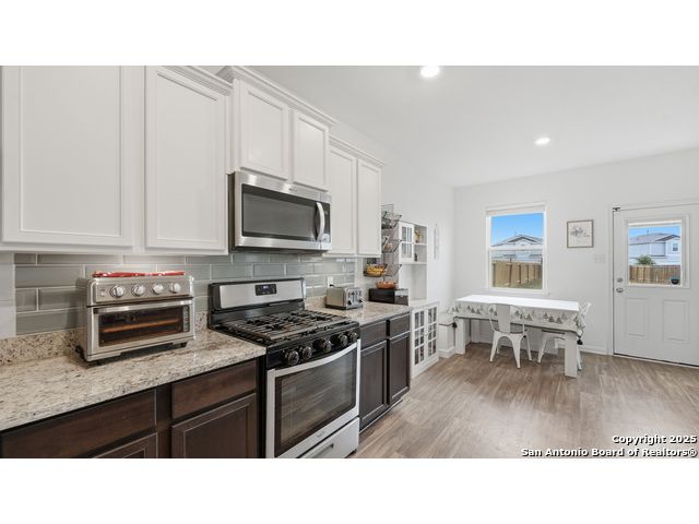 Step into modern Texas living with this beautifully kept 2021-built, 3-bed, 2.5-bath home offering nearly 2,000 sq ft of bright, open-concept comfort. The kitchen steals the show with designer cabinets, granite countertops, & a breakfast bar that flows effortlessly into the living & dining areas - perfect for hosting or unwinding. Upstairs, enjoy three generous bedrooms, including a primary suite with dual walk-in closets, a garden tub, & a separate walk-in shower - your own private retreat. Outside, a large fenced backyard on a ~0.18-acre lot gives you space to grill, garden, build a playscape, or even plan that future pool. A 2-car garage & water softener system add convenience to everyday life. Why This Home - Why Now? Incredible Value: Priced well below the New Braunfels market (where many homes sit $330K-$340K+). Prime Location: Between Austin & San Antonio - quiet living with big-city access. Fast-Growing Area: New Braunfels is one of Texas' hottest housing markets; demand is soaring. Low-Maintenance & Move-In Ready Backyard Potential: Space that's getting harder to find at this price point! Picture summer evenings in your big backyard. Weekend floats on the rivers. Quick drives to San Antonio or Austin. A modern home that feels good the moment you walk in - & makes financial sense, too. Welcome Home!