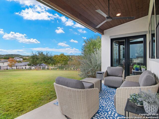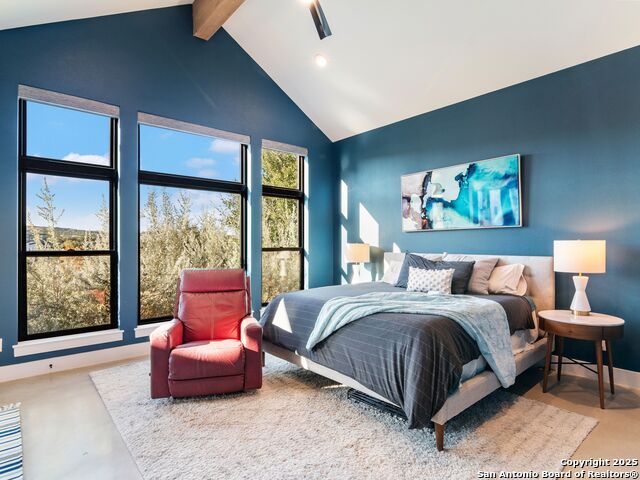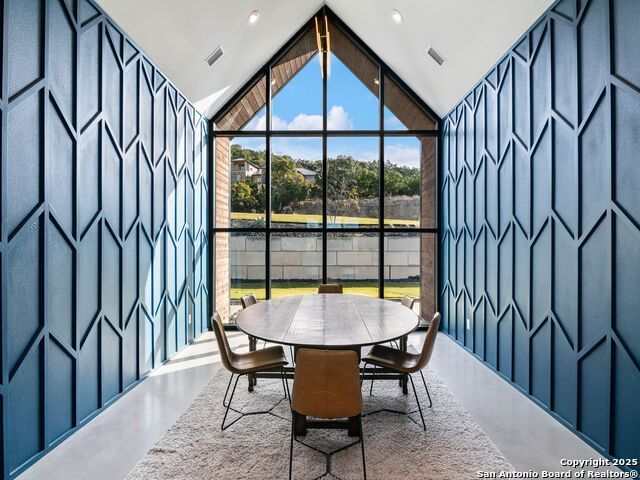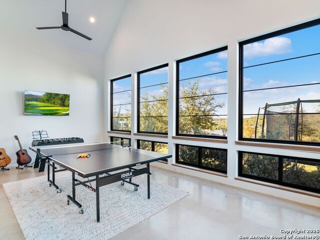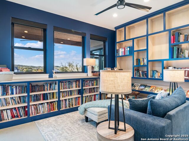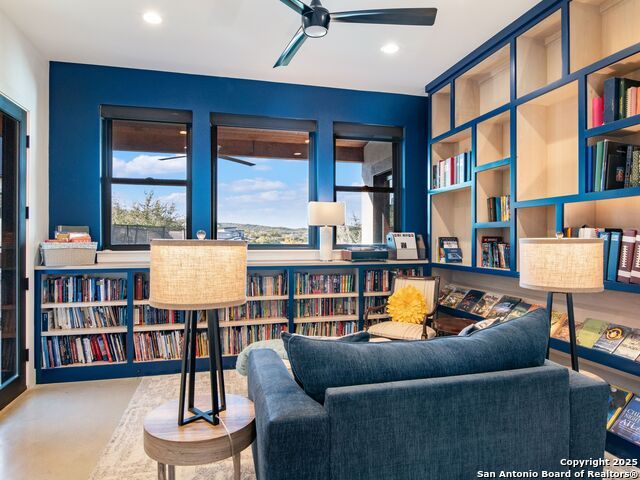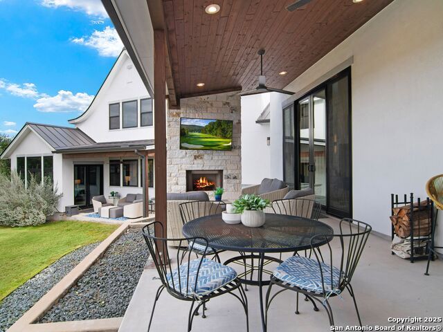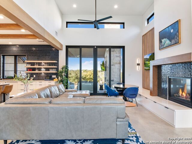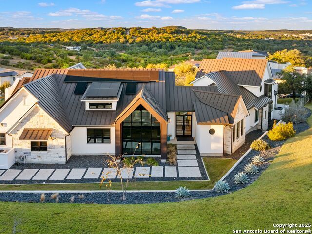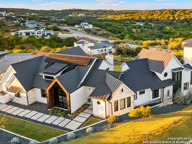Exceptional custom residence in the Canyons at Scenic Loop, crafted with refined finishes and a modern, highly functional floor plan. The home is defined by soaring ceiling heights, abundant natural light, walls of windows, and thoughtful architectural and lighting details that elevate every space. The chef's kitchen showcases a large waterfall island, custom cabinetry, and seamless flow into the family room for effortless everyday living and entertaining. A privately owned solar panel system provides enhanced energy efficiency and significantly reduced utility costs, a rare advantage in this community and an important highlight of the property. The primary suite offers a serene retreat with a spa-inspired bath and an oversized walk-in closet. Four generously sized guest bedrooms provide flexibility for family, guests, or long-term stays. Multiple living and entertainment areas include a game room, a separate media room, and a dedicated library. A private flex room off the outdoor area is ideal for a gym, studio, workshop, or hobby space. Situated on an oversized corner lot, the outdoor living environment is designed for year-round enjoyment with a premier spa, expansive decking, large covered patios with wood-paneled ceiling accents, and a stacked-stone fireplace overlooking the tranquil surroundings.