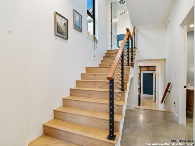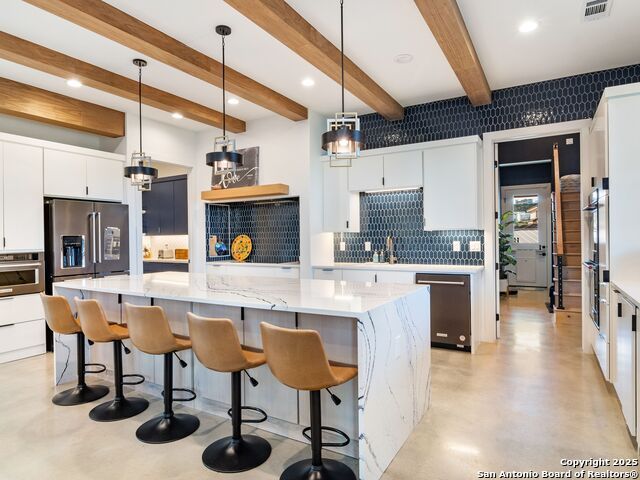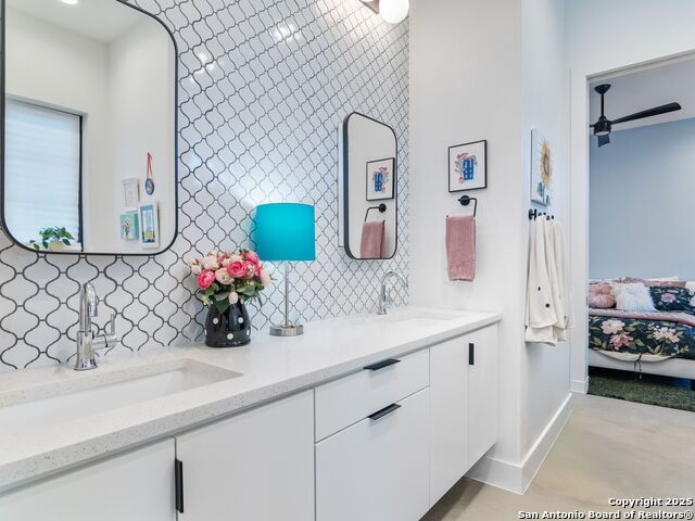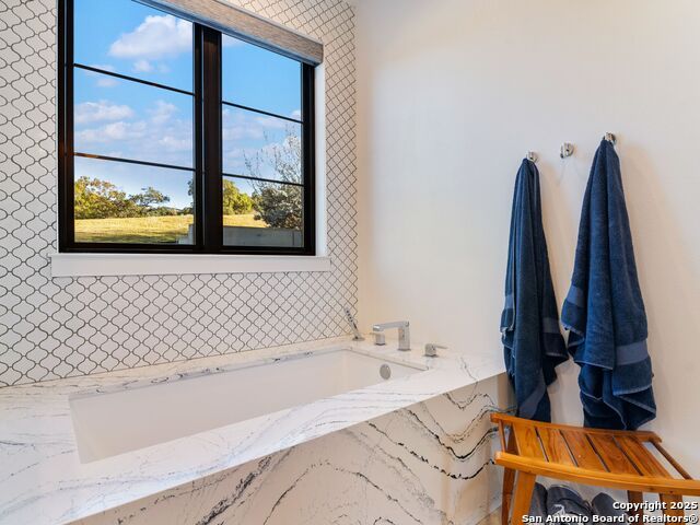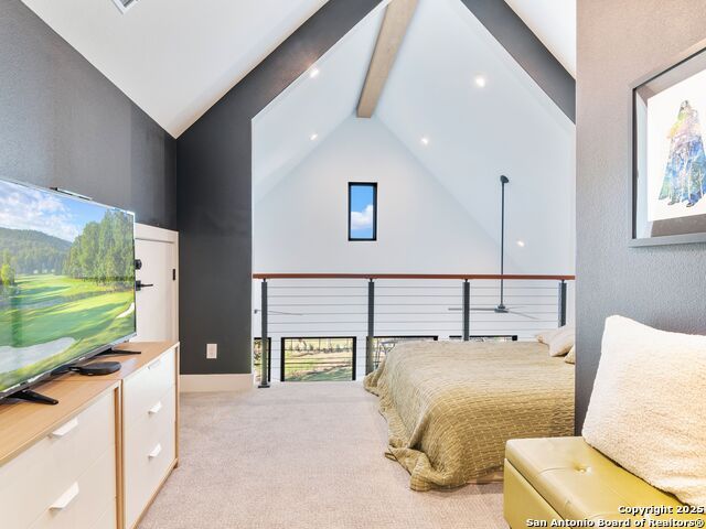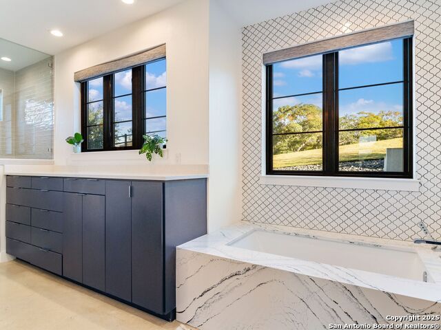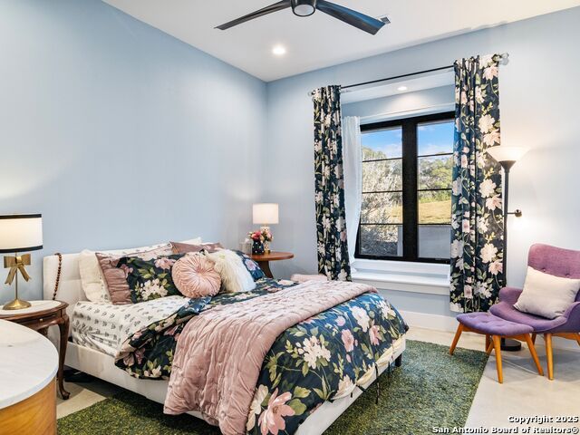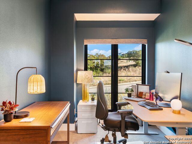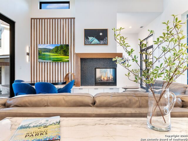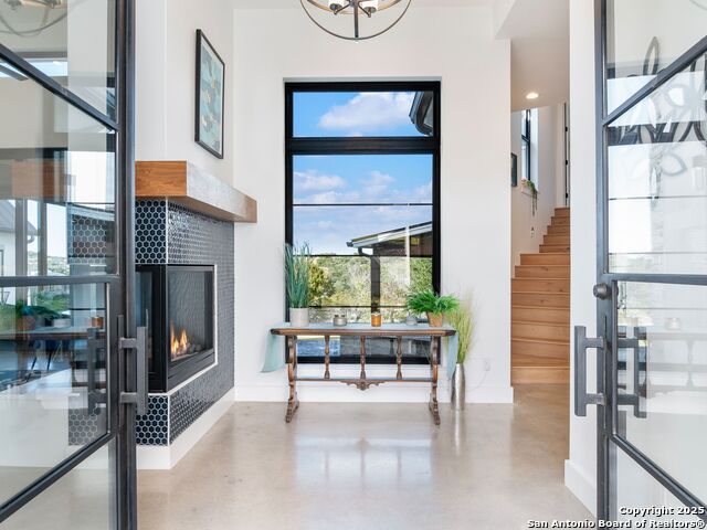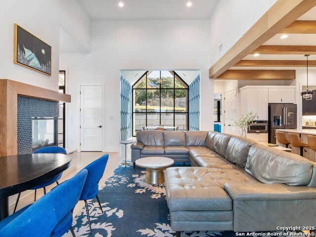 Exceptional custom residence in the Canyons at Scenic Loop, crafted with refined finishes and a modern, highly functional floor plan. The home is defined by soaring ceiling heights, abundant natural light, walls of windows, and thoughtful architectural and lighting details that elevate every space. The chef's kitchen showcases a large waterfall island, custom cabinetry, and seamless flow into the family room for effortless everyday living and entertaining. A privately owned solar panel system provides enhanced energy efficiency and significantly reduced utility costs, a rare advantage in this community and an important highlight of the property. The primary suite offers a serene retreat with a spa-inspired bath and an oversized walk-in closet. Four generously sized guest bedrooms provide flexibility for family, guests, or long-term stays. Multiple living and entertainment areas include a game room, a separate media room, and a dedicated library. A private flex room off the outdoor area is ideal for a gym, studio, workshop, or hobby space. Situated on an oversized corner lot, the outdoor living environment is designed for year-round enjoyment with a premier spa, expansive decking, large covered patios with wood-paneled ceiling accents, and a stacked-stone fireplace overlooking the tranquil surroundings.