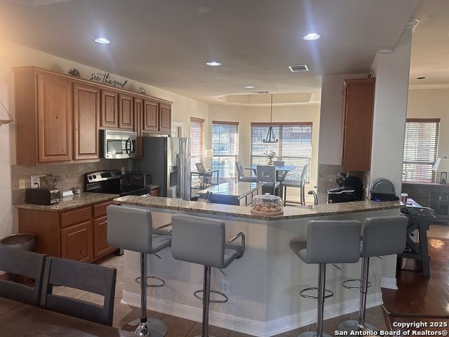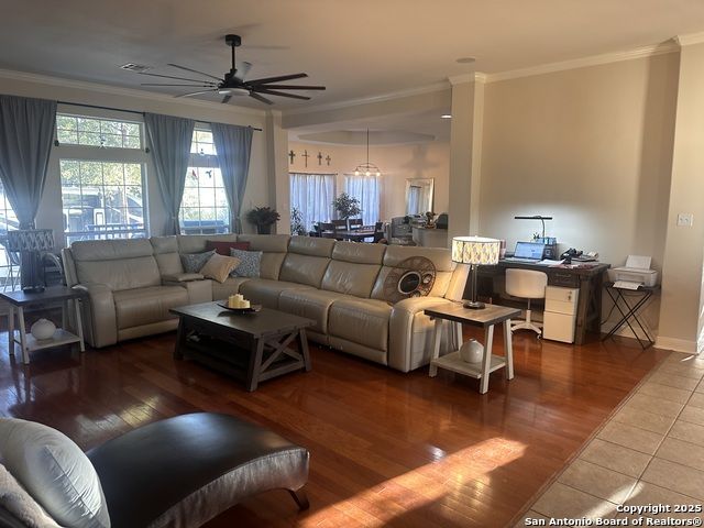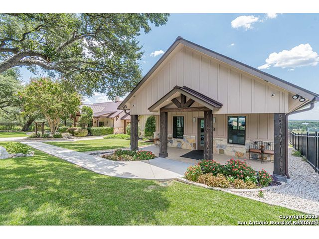 Nestled on a full acre of private, tree-studded land in a premier Hill Country community, this exceptional custom home offers the perfect balance of upscale comfort, scenic beauty Stunning Hill Country home with abundant space inside and out! A covered porch invites you to relax and enjoy wildlife views. The floor to ceiling windows offers light-filled living area featuring wood flooring, a cozy fireplace, crown molding, rounded corners, and surround sound wiring extending to the back porch. The walkthrough kitchen offers a center island, stainless steel appliances, granite counters, and dining areas on both ends-perfect for entertaining. The huge master suite includes private access to the backyard, while three main-level bedrooms and a fourth bedroom with kitchenette and full bath provide flexible living options. The private apartment is ideal for guests, Airbnb, or rental income. The three-car-attached garage offers ample space for vehicles and storage, while the metal seam roof provides lasting durability. Community amenities include a 32-acre clubhouse with two pools, sports courts, walking trails, and a fishing pond. Stay active with the state-of-the-art fitness center, or gather with family at the River Park Pavilion, picnic tables, and recreational spaces. Don't miss this incredible opportunity to own a Hill Country retreat with lifestyle and comfort built in!, and proximity to some of Central Texas' most sought-after destinations This ideal location is minutes to restaurants, shopping, music venues, theatres, hospitals also just a short trip away to Schlitterbahn, the Guadalupe and comal River, Historic Gruene, The San Marcos Outlet Shops, and Canyon Lake!. And everything new Braunfels has to offer. PLUS, a 58-acre park with private Guadalupe River access and convenient to both Austin and San Antonio. ** NO CITY TAXES! **This is more than a home-it's a lifestyle of luxury, privacy, and prestige. Your Hill Country haven awaits. Schedule your private tour today.