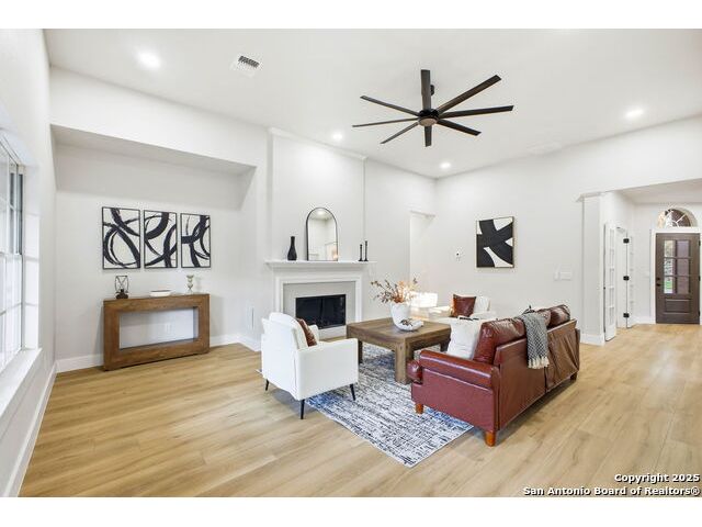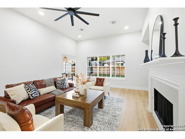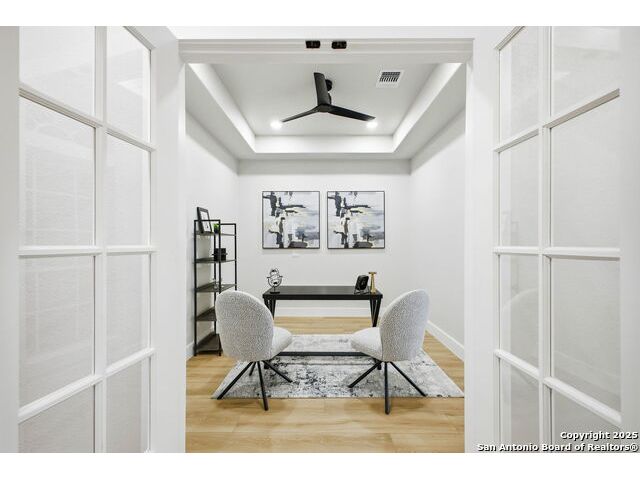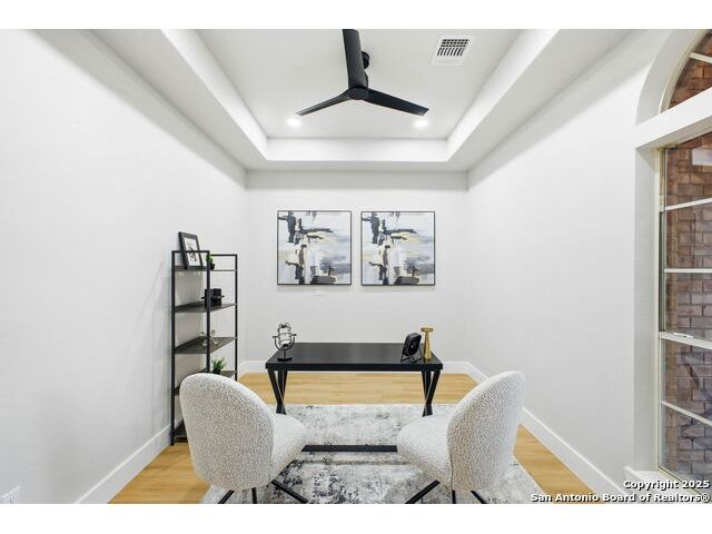 A dramatic entry welcomes you into expansive living spaces filled with natural light, soaring ceilings, and curated designer finishes. The reimagined interior features a stunning modern fireplace, wide-plank flooring, and an effortless flow ideal for upscale entertaining. The chef inspired kitchen and luxuriously updated baths showcase premium materials and meticulous craftsmanship. The secluded primary suite provides a true sanctuary, while the additional bedrooms and dedicated office offer versatility for today's lifestyle. Outdoor views are framed by oversized windows, enhancing the tranquil setting. The detached garage adds both convenience and flexibility. This exceptional property delivers the beauty of a complete renovation within the security and prestige of a guarded, gated community, this is an extraordinary opportunity not to be missed.