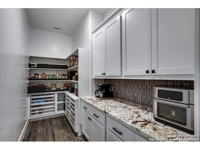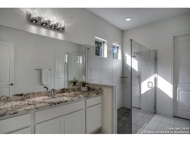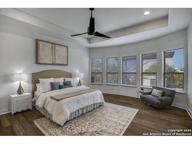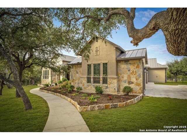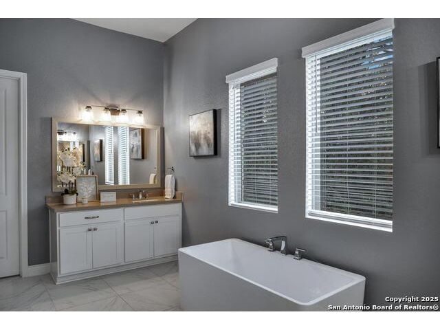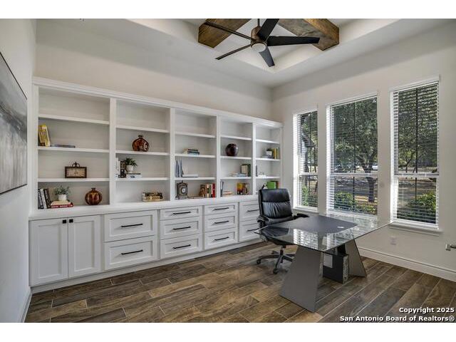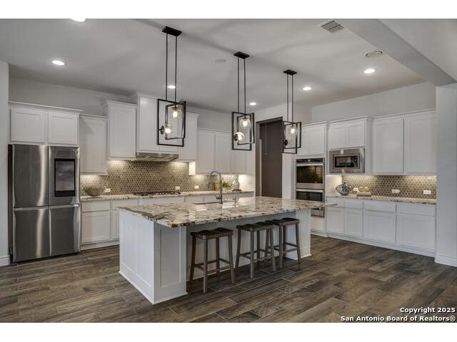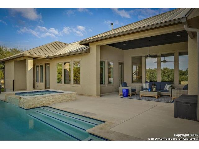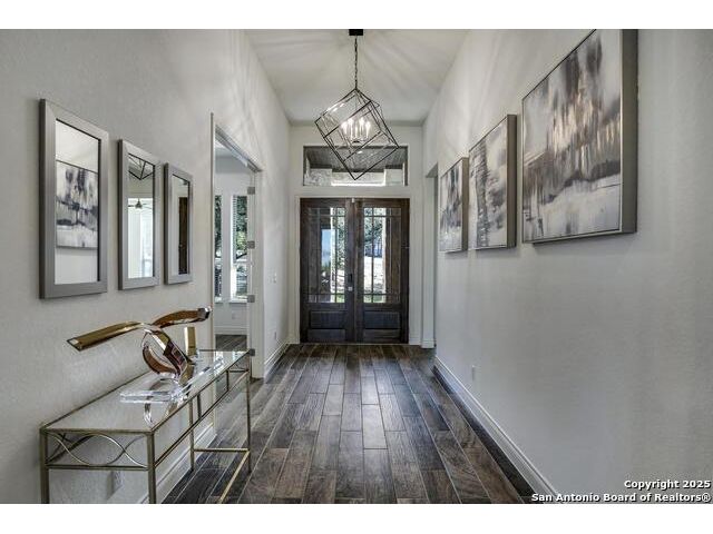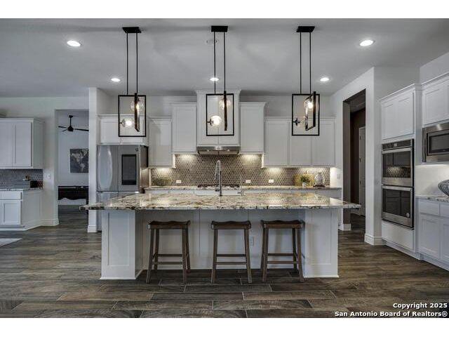VA Assumable loan 3.1%. Luxury one-story home in the exclusive gated community of Belle Oaks. Set on a one-acre lot, this exquisite residence offers refined living with modern amenities, an open layout, and seamless indoor-outdoor flow. Enjoy a resort-style pool and spa, generous living areas, and an oversized 3-car garage with custom epoxy flooring and stainless-steel cabinetry. Inside, 12-foot ceilings, abundant natural light, and large picture windows create an inviting atmosphere. The beautiful family room centers around a floor-to-ceiling stone fireplace and opens to a spacious dining area and chef's kitchen, complete with a large granite island, ample cabinet storage, upgraded lighting, Monogram gas cooktop and dishwasher, double ovens, microwave, French door smart refrigerator, upgraded pantry, and a butler's pantry with a wine refrigerator and plumbing for a sink. Throughout the home, you'll find stylish wood-look tile flooring in the main living areas and warm engineered wood in the bedrooms. The home features 4 bedrooms and 4.5 baths, including a primary suite with a spa-like bath, his-and-her vanities, walk-in shower, stand-alone tub, and a gorgeous walk-in closet. A large secondary ensuite and the remaining bedrooms each include private baths and walk-in closets. Additional spaces include a dedicated office with glass French doors, media room, and a game room with half bath and outdoor access. Outdoor living is exceptional, with a large sundeck, built-in grill and refrigerator, and a sparkling pool and spa-perfect for entertaining or relaxing. Belle Oaks provides resort-style amenities including a pool, clubhouse, sports courts, playground, and nature trails.