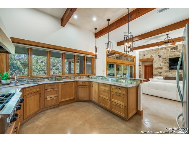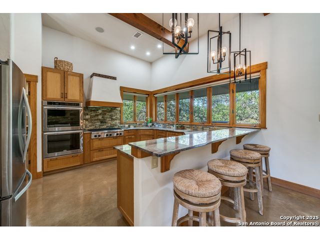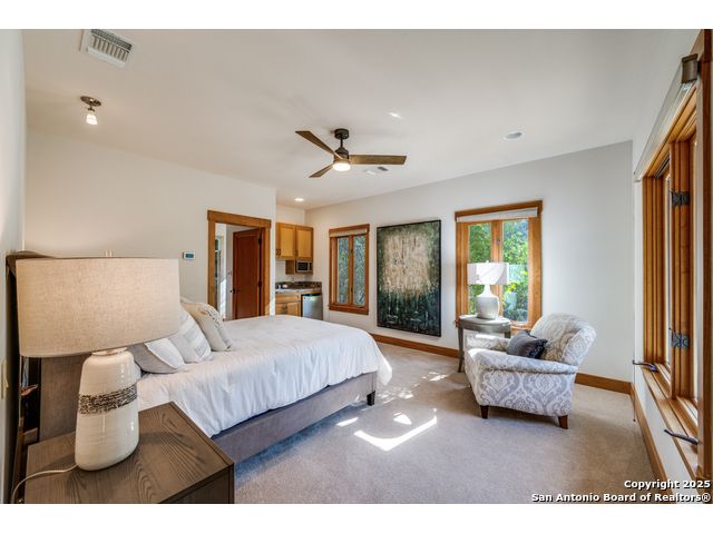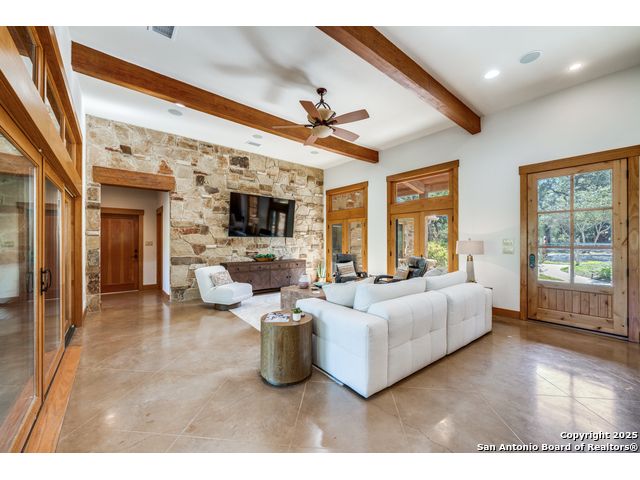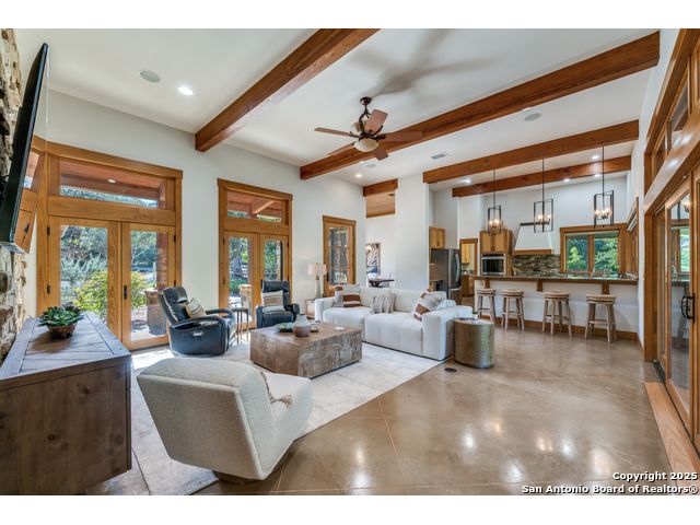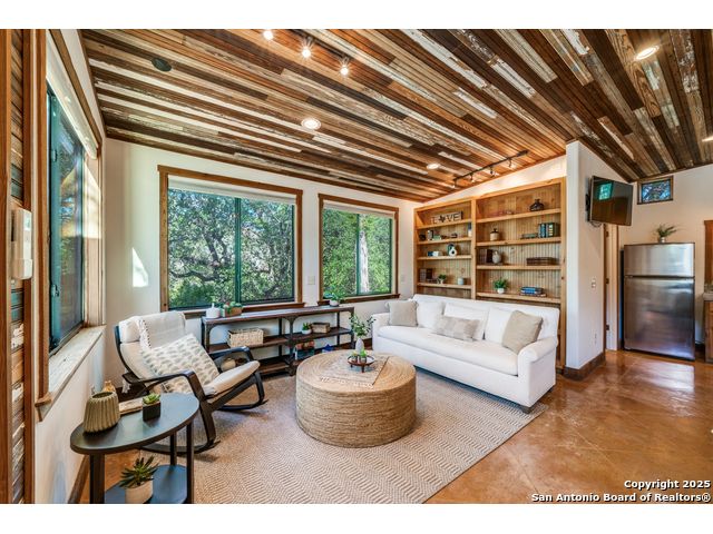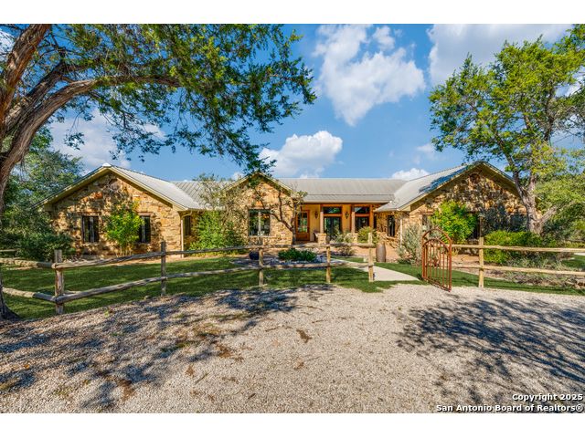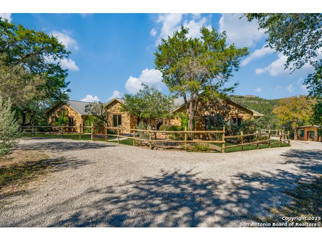 Welcome to 701 RIVER BEND BLVD! Where Luxury meets Peace and Tranquility. This Beautifully Designed, well thought out, Custom Home is Perfectly Placed Atop the Banks of the BLANCO RIVER. From the moment you drive in, you know you're somewhere Extraordinary! Enter to find Soaring Ceilings, Custom Woodwork, Open Floor Plan, Beaming Natural Light and CAPTIVATING VIEWS! This Spacious Gourmet Kitchen, built for a Chef, has plenty of room for family and friends to gather with windows overlooking the Sunset Views! Grande Dining room just off the kitchen for convenient entertaining and flow. Step into your Private Primary Suite w/Luxurious Ensuite and feel as though you've entered into a SPA, your very own private spa, where you'll also be taking in those Breathtaking Sunset Views. You'll even have Views from your Dream Closet! Secondary bedrooms all w/Ensuite and GORGEOUS VIEWS! Including the Attached Casita/Office/Guest quarters with a Private Entry and Kitchenette. Just across the way you'll find your SEPARATE GUEST COTTAGE with Living Room, Full Kitchen, Bathroom and Library Shelves. Lets not forget those Amazing VIEWS! The Greenhouse and Garden/Potting shed just next to the Guest Cottage is a GARDENER'S DREAM! Take a drive, or walk down your PAVED DRIVE/WALK WAY to your property's 440 feet of BLANCO RIVER FRONTAGE! One of the LARGEST SERENE PROPERTIES in the area! This Luxury Property boasts a RIVERFRONT DECK equipped with kayaks ready for exploring the Beautiful Blanco River! Relax by the OUTDOOR FIREPLACE on your Covered Patio or just enjoy listening to the Sounds of Nature under a Blanket of Evening Stars across the River from the hills of Wimberley. So many points of interest here! Choose from the many Outdoor Spaces to enjoy the BREATHTAKING VIEWS of this Beautiful Winding BLANCO RIVER HOME. Private River Deck with Built In Umbrella Stands, Potter/Gardener's shed, Natural Patio landing with Fire Pit, Tables and VIEWS! Gather Fresh Herbs from the Raised Garden Beds for dinner. Kayak along the River, grill out on your Patio and enjoy the Views and a warm fire on a cool night. Just to name a few! Take in fine dining and shopping in Sweet Wimberley, just a few minutes drive, by way of an EXCLUSIVE PRIVATE ROAD. Just a quick drive to ATX airport, yet this Private Gated neighborhood lends itself to morning walks and bike rides, where your neighbors become friends and time slows down. This Unparalleled Lifestyle is for those who seek the BEST.