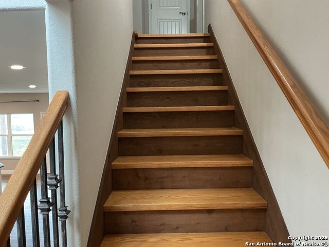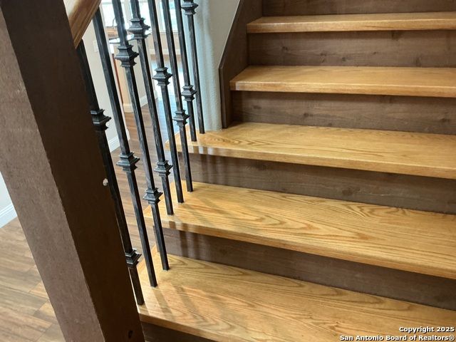 Welcome to this stunning 2-story, 1.7 acre property located in the charming Bulverde, Tx. With stunning hilltop views and park like atmosphere. Its impressive features and ample space, this residence offers the ideal retreat for those seeking comfort and functionality. As you approach the property, you'll be greeted by a covered front porch, inviting you to step inside. Upon entering, you'll notice the elegant ceramic wood-like flooring that flows throughout the main living areas and first-floor bedrooms, providing a warm and inviting ambiance. The second-story bedrooms are adorned with plush carpeting, offering a cozy and comfortable atmosphere. The living room boasts a beautiful fireplace, creating a focal point for relaxation and gatherings during cooler evenings. The kitchen is a chef's dream, equipped with an island, built-in double ovens, microwave, refrigerator, 300 AMP electrical service, and an abundance of counter and cabinet space. It's the perfect place to unleash your culinary creativity. Adjacent to the kitchen, you'll find a spacious laundry room complete with counterspace and cabinets, making laundry day a breeze. The convenience continues with the primary and a secondary bedroom located downstairs, ensuring easy accessibility. The primary en-suite bathroom is a luxurious retreat, featuring a separate stall shower and garden tub, double vanities, and a large walk-in closet with shelves, providing ample storage space for all your belongings. Each of the bedrooms is equipped with ceiling fans to keep you cool and comfortable year-round. Step outside onto the large covered back patio, where recessed lighting sets the stage for memorable outdoor entertaining and relaxation. The property also offers a long driveway and a 4-car detached garage, providing ample parking space for you and your guests. Additionally, a storage shed is available, spray foam attic, on demand water heater, the home is very energy efficient. Don't miss the opportunity to make this remarkable 5 bedroom, 3.5 bathroom property your new home. Go and show.