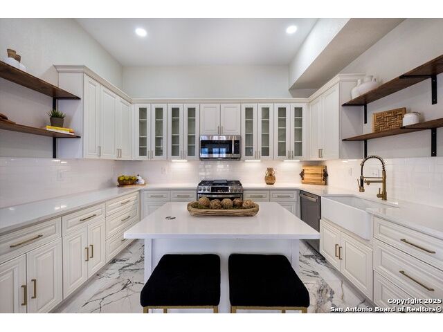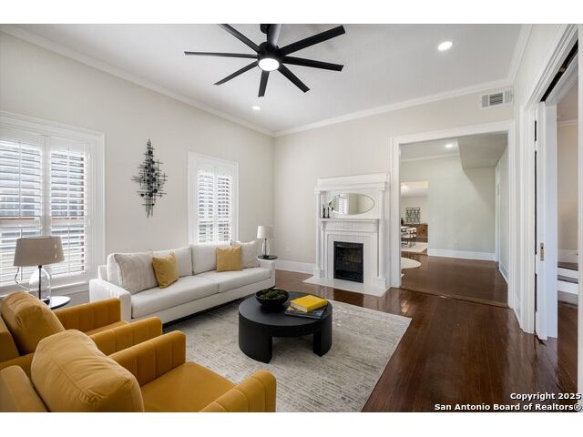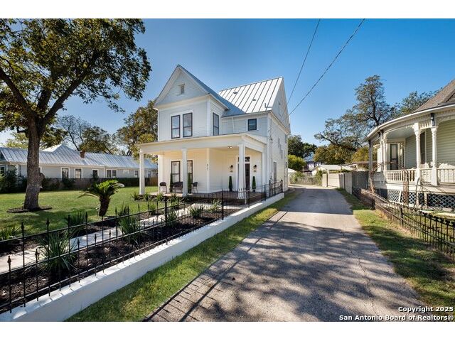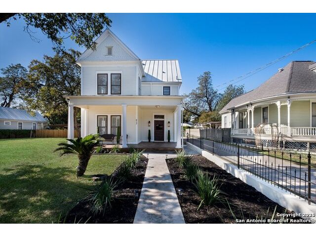 Welcome to 617 E Guenther Street! This fully renovated Victorian historic gem sits on a double lot in the heart of San Antonio's highly sought-after King William Historic District. Built in 1915, the home seamlessly blends timeless character with modern functionality. Step inside to a grand foyer with a stunning staircase and gorgeous chandelier that sets the tone for elegance. Tons of natural light and soaring high ceilings highlight two inviting living spaces that offer comfort and flexibility. The kitchen features quartz countertops, custom cabinetry, and an oversized island, complemented by an expansive dining room. The home boasts three oversized bedrooms, three fireplaces, gorgeous, renovated wood floors throughout, plantation shutters, and stained glass windows that add a warm glow to the staircase area. Enjoy the spacious front porch, perfect for admiring the lights of the tower at night. The property also includes a massive backyard with plenty of concrete space, a 4 car carport, and a detached 1260sq.ft. FINISH APARTMENT with a private entrance, offering income potential and endless possibilities and Just blocks from premier dining, shops, parks, and museums, this home is a rare blend of history, charm, and modern living a true King William treasure.