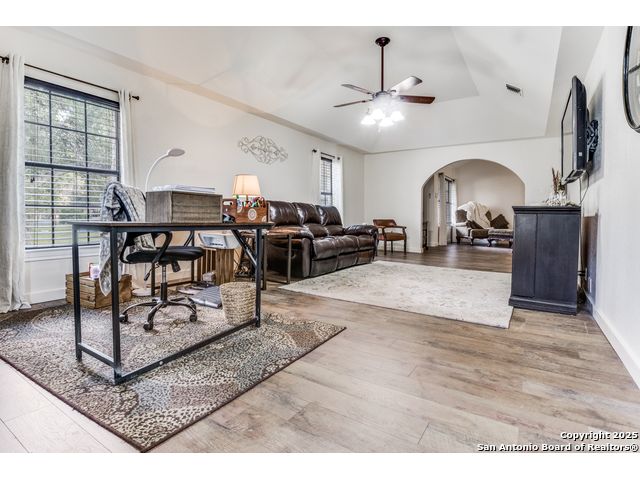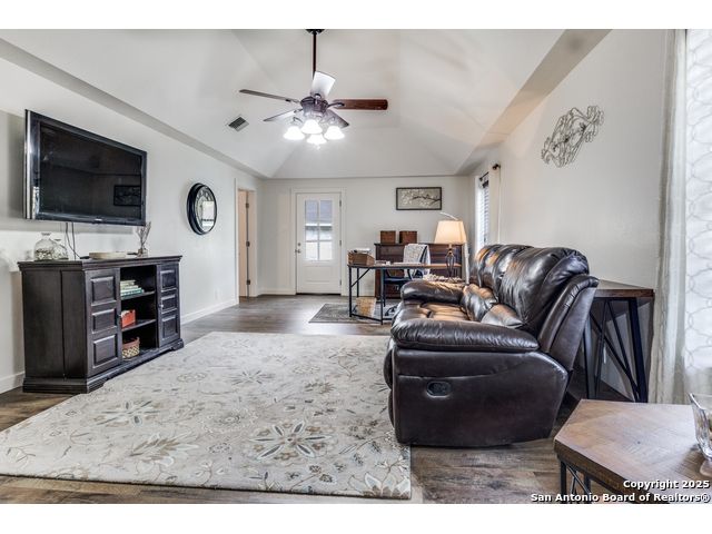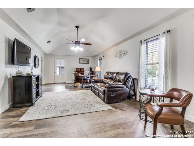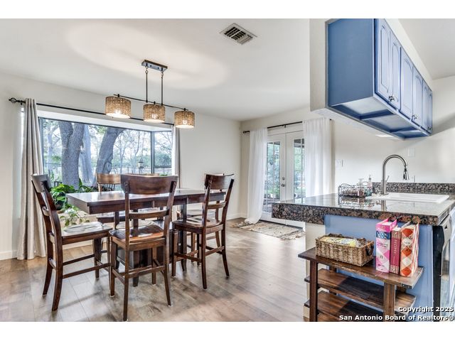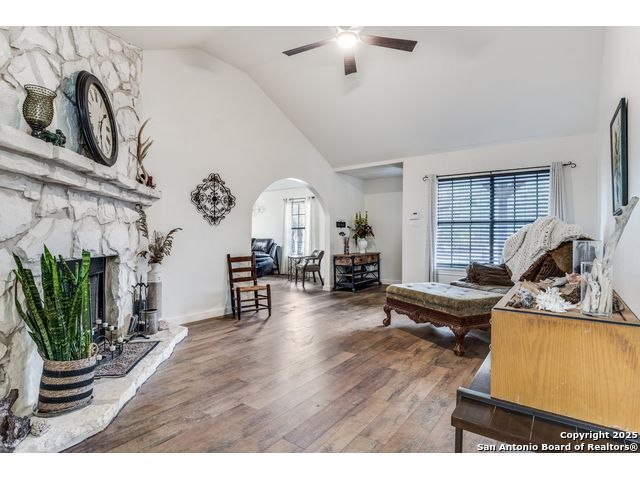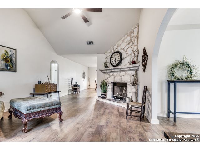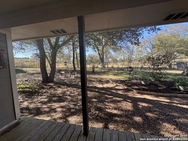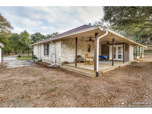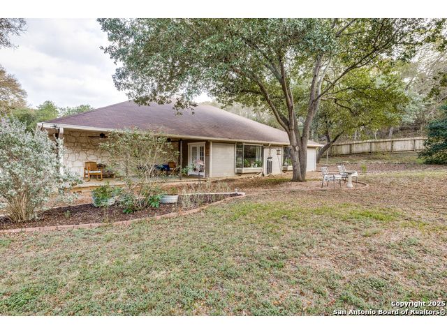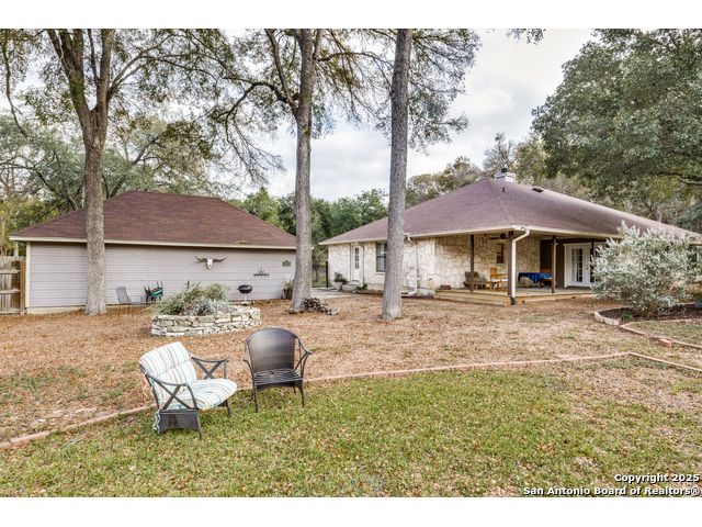 This coveted Ranger Creek subdivision home is a true must-see, where convenience and comfort meet! A beautiful ranch-style home sitting on almost one full acre has recently new laminate plank flooring throughout! Situated in the center of the cul-de-sac, and backing up to a large ranch, it is the envy of the neighborhood! Curb appeal doesn't do this one justice, with beautiful and mature Texas Live Oak and Cedar Elm trees, you won't have to seek shade. Upon entering this gem, you are drawn to the large custom double pane picture window in the dining room facing the ranch and a matching one in the master bedroom...you won't yearn for great views! The quaint living room with wood-burning fireplace flows seamlessly into a large family room in one direction and a country kitchen and dining in another. Exit the dining room to a large, covered patio deck and spacious backyard perfect for the kids and/or entertaining! All three bedrooms are uniquely large with two on one side of the home while the third mother-in-law style bedroom with its own full bath is on the other, just off the family room. This floor plan is perfect for those seeking space while maintaining that cozy and quaint feeling! Located just off IH-10 with easy access to the highway and all things Boerne (shopping, hospital, great schools, eateries, parks and so much more), without the noise and traffic. With great neighborhood amenities this home is the ideal escape for de-stressing, re-charging, entertaining, or just doing you! Don't sleep on this one, sleep in it, welcome home!