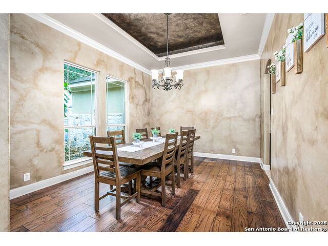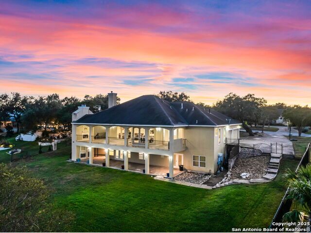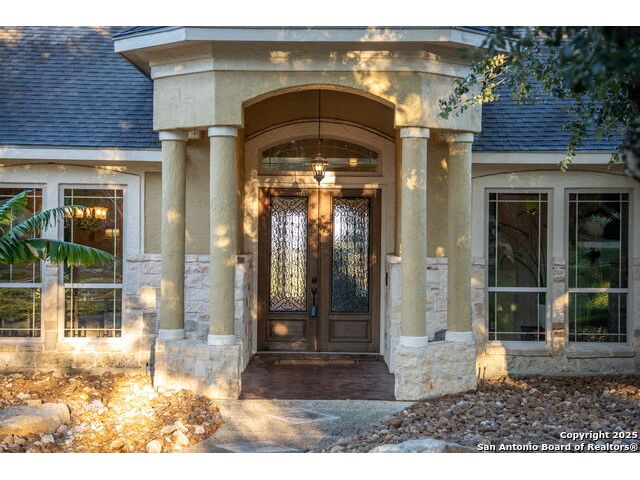 Welcome to this custom-built 2003 Parade of Homes beauty, perfectly perched on an elevated lot with Hill Country views! The circular driveway makes a grand first impression, leading to a home designed for both entertaining and everyday living. Step inside to a spacious barrel ceiling entry that flows into the formal dining room, a dedicated office to the right, and an inviting living area complete with a wet bar, perfect for hosting gatherings in style. The kitchen overlooks it all, creating a seamless connection for cooking and conversation. The main level features both the primary suite and a secondary en-suite bedroom, offering ideal comfort and privacy. The primary wing is truly a retreat, an expansive bedroom with a cozy sitting area and double doors leading to the covered balcony. The luxurious bath includes a large walk-in shower, separate whirlpool tub, dual vanities, his-and-hers walk-in closets, two private toilets, and a bidet. Downstairs, discover a rare Hill Country feature: a walk-out lower level with a game room, wet bar, media room, and two additional bedrooms. It's the ideal setup for multi-generational living or weekend guests. This home combines character, functionality, and incredible potential AND it's priced to sell. Schedule your private tour today and see why this one stands out from the rest!