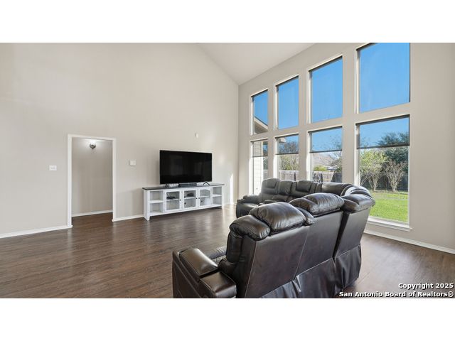 This isn't just a house...this is the kind of place where memories are made. From the moment you step inside this 5 bedroom, 3.5 bathroom, 3,380 sq ft home, you're welcomed by soaring two story windows that flood the living room with natural light and make the space feel truly spectacular. It's warm. It's inviting. It's the kind of home where everyday moments feel just a little bigger. The primary retreat is tucked away downstairs for privacy, along with a well-appointed home office, formal dining space for Sunday dinners, a generously sized laundry room, and a kitchen that opens beautifully into a casual dining area. It absolutely perfect for busy mornings and slow evenings. Tired of cramped bedrooms? You won't find that here. Upstairs offers four spacious additional bedrooms and a second living area, ideal for game nights, movie marathons, creative spaces, or quiet retreats. The backyard? The last thing you'll feel is a lack of space. Wide open and ready for entertaining, relaxing, or designing your future outdoor oasis, with room to dream big. Round it out with a spacious four car garage with room for storage, tools, and gear. And if it feels like a home built for real life in highly sought after Navarro ISD...it's because it truly is.
