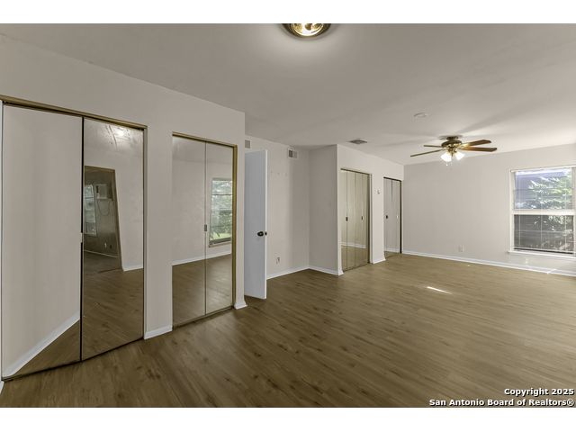 Single-story midcentury home with very nice curb appeal in an excellent East Terrell hills location. Just a short drive to Fort Sam Houston or downtown. In addition to the front living room, there is a huge family room at the back of the home. Primary bedroom has plenty of room for a sitting area or nursery. Garage has been converted to living space. Huge covered patio overlooks a spacious back yard and a large storage shed. Come see it today!