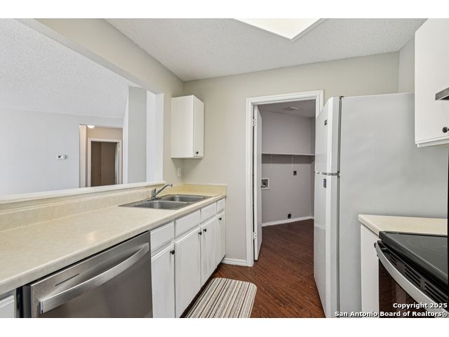 This move-in-ready Kirby home blends recent 2025 improvements with a practical, easy-to-live-in layout. Updates completed in 2025 include the roof, HVAC system, stainless steel dishwasher, stove, and vent hood, along with wood-style window blinds, a sliding door, fencing, and fresh interior and exterior paint. The open layout brings in plenty of natural light, with comfortable bedrooms and a large laundry/pantry/utility room just off the galley kitchen for added storage and function. The semi-finished garage features drywall and a partially floored area that has been used as a home gym, giving you flexible space for hobbies or workouts. Out back, the fenced and cleared yard offers shade and privacy trees, ready for pets, play, or future landscaping projects. Neighborhood streets have been recently refinished, adding to the clean, well-kept feel of the area. Kirby, Texas offers a small-town atmosphere with quick access to San Antonio, appealing to buyers who want a quieter neighborhood without sacrificing proximity to major roads, employers, shopping, and dining. With its approachable price point, convenient location, and established community feel, Kirby is a smart choice for anyone looking to put down roots while staying close to everything. This home is a strong opportunity to step into that lifestyle. Ready for its next owner, you will want to schedule a tour soon.
