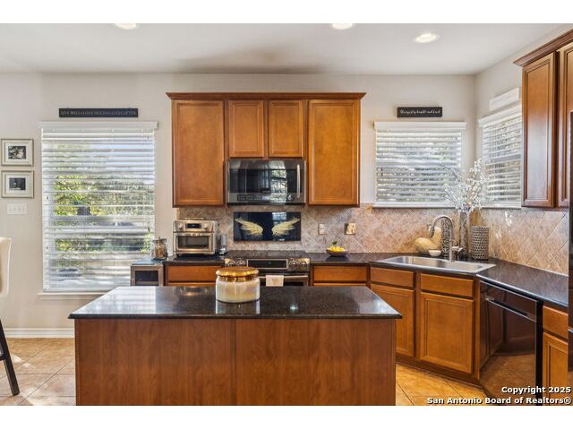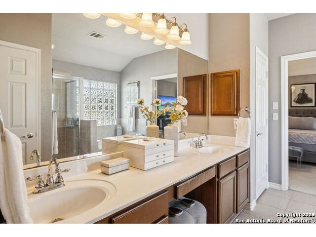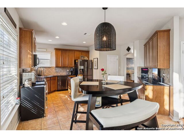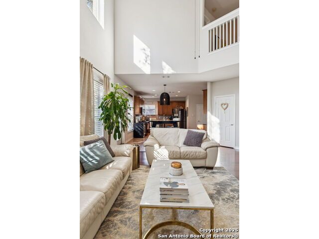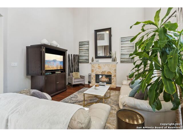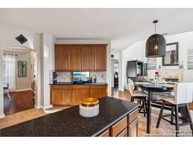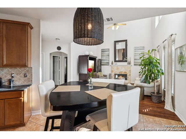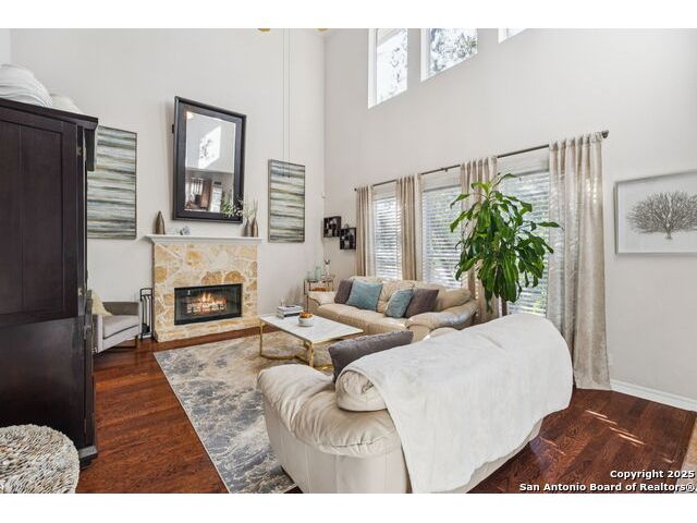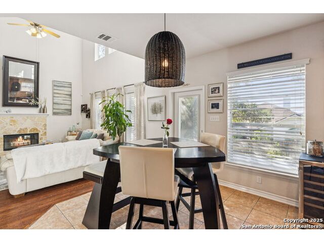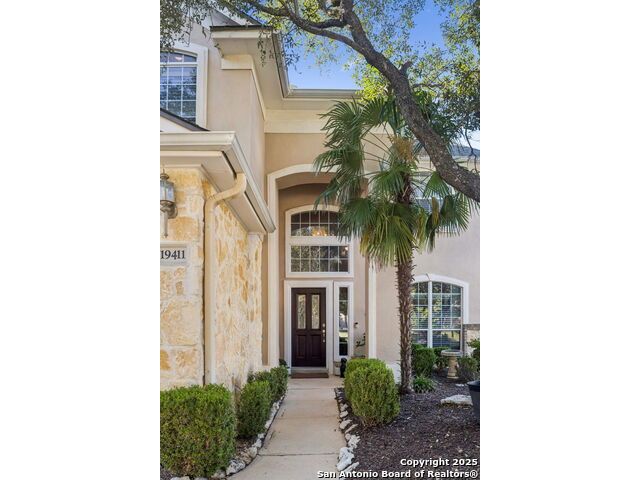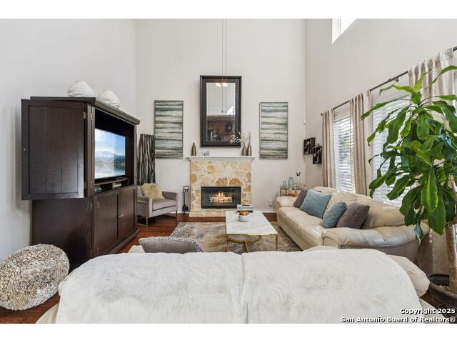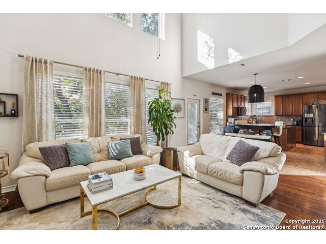 Welcome to 19411 Sweet Oak, a beautifully updated 4-bedroom, 3-bath home located in the highly desirable Oaks at Sonterra. This stunning residence offers 2,390 sq. ft. of living space on a 0.23-acre lot, featuring soaring 19-foot ceilings and large windows that fill the living room with natural light. The spacious kitchen showcases quartz countertops, a large island, and an open layout that flows seamlessly into the living room-perfect for entertaining or casual family gatherings. A cozy wood burning fireplace anchors the living area, creating a warm and inviting atmosphere. The primary suite serves as a private retreat with a spa-like ensuite bath featuring a garden tub, separate shower, dual vanities, and a walk-in closet. Additional bedrooms offer flexibility for family, guests, or a home office. Step outside to enjoy a peaceful backyard oasis, ideal for relaxing or outdoor dining. Located in the heart of Stone Oak, this home provides access to top-rated schools, shopping, dining, and a vibrant community. Residents enjoy proximity to a country club offering golf, tennis, dining, and social events-making everyday living feel like a resort experience.