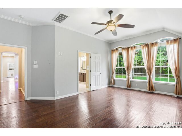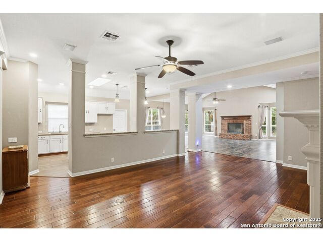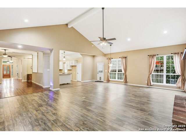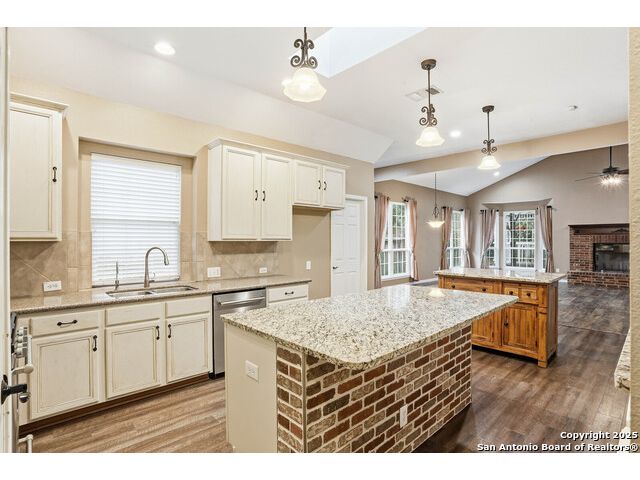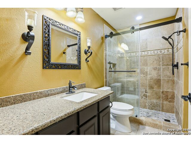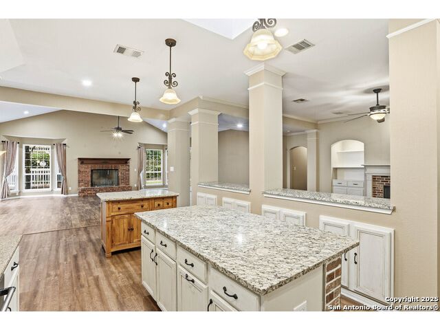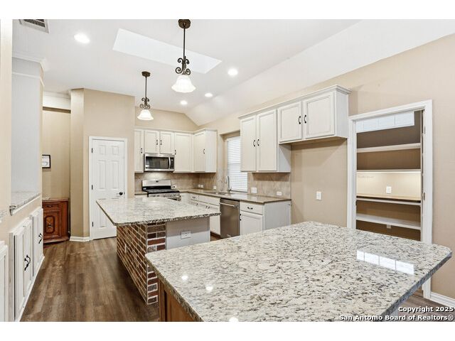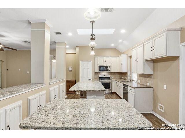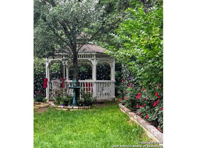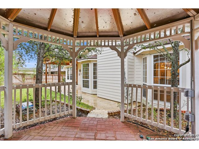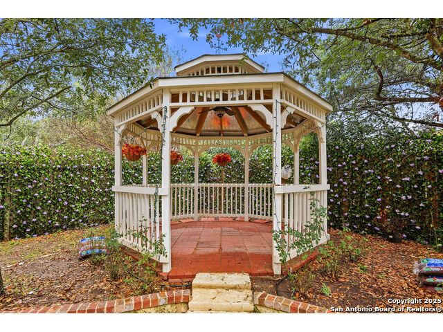 One-of-a-kind and beautifully upgraded, this Stone Oak single-story features the largest one-story floor plan in the community with exceptional curb appeal. Inside, enjoy a dedicated office plus an extra flex space, a separate dining room, and a stunning remodeled kitchen with abundant cabinetry, double islands, gas cooking, custom walk-in pantry, and coffee bar. The spacious primary suite includes private access to the 4th bedroom-ideal for a nursery, gym, or dream closet. An approximately 600 sq. ft. custom-added second family room provides even more living space. Outdoor living is built for entertaining with a large covered patio, custom gazebo, and lush year-round greenery. Beautiful views from nearly every window and custom upgrades throughout make this home a rare find in the heart of Stone Oak. Top NEISD schools, Reagan HS.