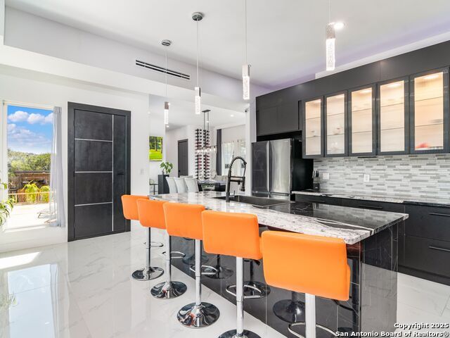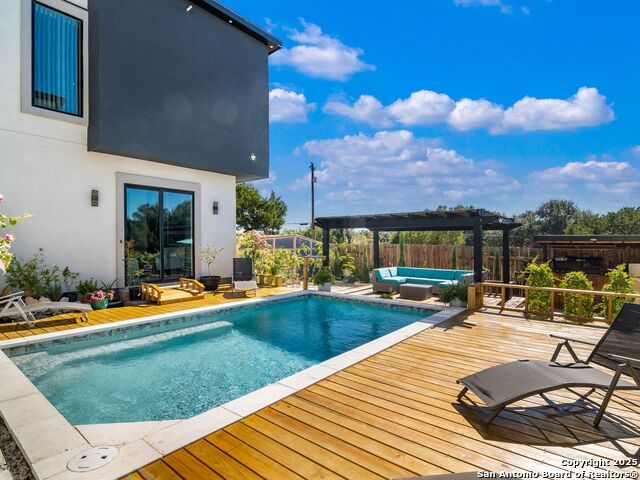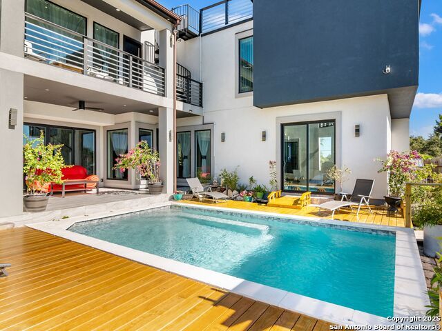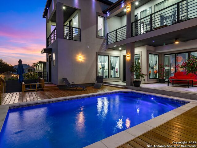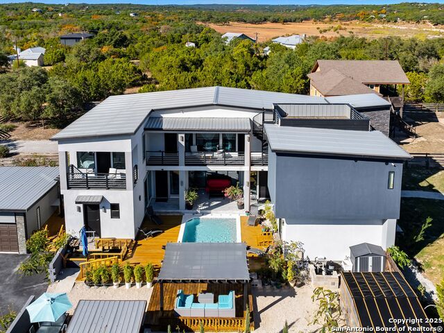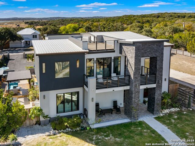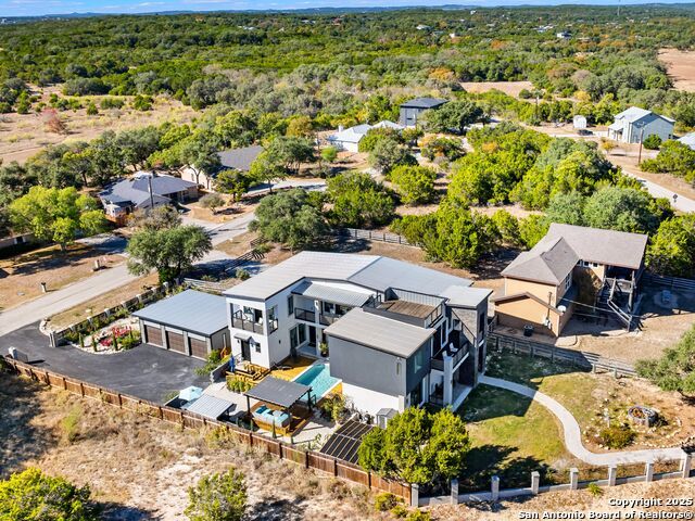 This house isn't just a house it's your own Hill Country retreat with the view and access of Canyon Lake. Tucked on a secluded, partially wooded 0.35-acre lot in the coveted Canyon Lake Island subdivision, this 2023 custom home offers approx. 3,981 sq. ft. with 4 bedrooms, 4 full baths and a flexible two-story layout designed for both everyday comfort and unforgettable entertaining. Mature trees frame long, relaxing views toward the water and surrounding hills, giving the property a true "lakehouse escape" feel while still sitting on a county-maintained road for easy access. Step into a light-filled living space anchored by three fireplaces, creating multiple cozy conversation areas for family and guests. The heart of the home is the island kitchen-finished with marble and tile flooring, double ovens, and plenty of prep and storage space-perfect for holiday gatherings, weekends at the lake, or hosting short-term guests. Primary suite on main level gives you walk in closet and access to pool. The primary suite on the second level offers privacy and convenience with a a generous walk-in closet with the primary bath features a separate shower, tub/shower combination options, and a dedicated vanity area, giving a spa-like feel and plenty of room to get ready without bumping elbows. The additional bedrooms are well-proportioned, giving everyone their own balcony comfortable retreat-ideal for multi-gen living, guests, or an income-producing setup. The staircase becomes a sculptural centerpiece enhanced by a custom-designed water feature that flows gracefully along its side. The property is all about relaxed Hill Country resort living. A private pool transforms the backyard into a true destination-cool off after a day on the lake, let kids play, or create an outdoor oasis with lounge chairs and string lights. The partially wooded lot offers a nice blend of usable yard space and natural Texas landscape, with room to add outdoor kitchens, fire pits, or extra seating areas to capture breezes and glimpses of the lake and hills. Located on Canyon Lake Island, you're close to lake access, marinas, and all the boating, fishing, and water fun Canyon Lake is known for, while still being within Comal ISD and convenient to area amenities in Canyon Lake, New Braunfels, and Spring Branch.
