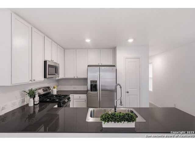 Welcome to this almost new and thoughtfully designed, this 3 bedroom 2 bath home that delivers a clean modern feel from the moment you walk in. The bright open living and dining space offers plenty of natural light and easy everyday flow. The kitchen features granite counter tops, white cabinetry, stainless steel appliances, gas cooking, ample cabinet space, and generous counter areas for meal prep and casual entertaining. The private primary suite includes a walk-in closet and a well-appointed bath with an extended vanity. Secondary bedrooms are comfortable and versatile, perfect for family, guests, or a home office. A half bath downstairs adds extra convenience. Step outside to a fully fenced backyard with room for relaxing, pets, or small gatherings. Stackable washer and dryer plus refrigerator are included! Located in a prime area with quick access to Loop 1604, Alamo Ranch shopping and dining, Lackland AFB, schools, and more. Move-in ready and an excellent opportunity as a first home or an investment property. Schedule your showing today!