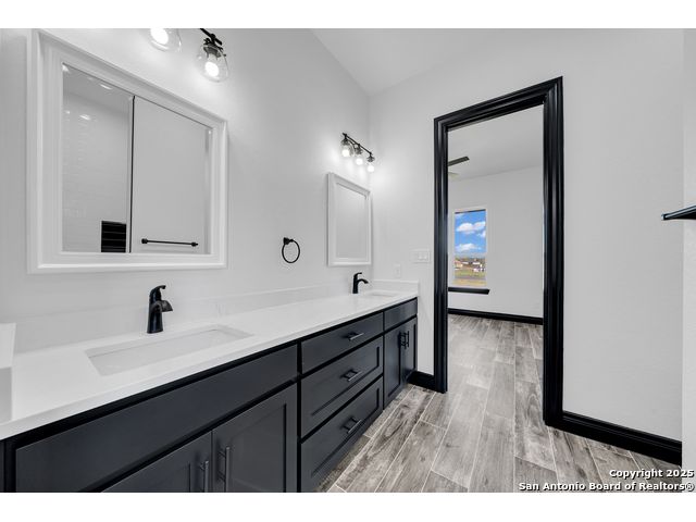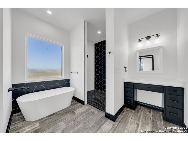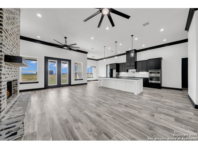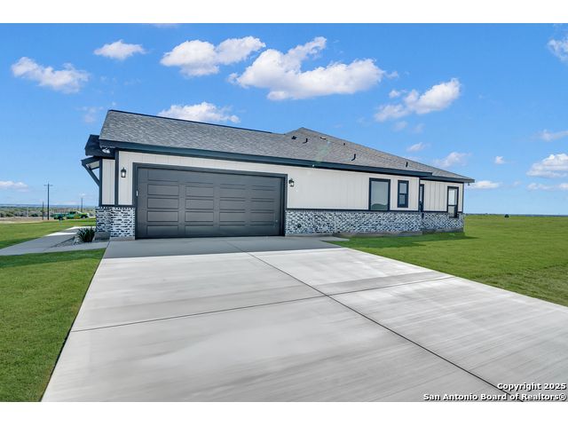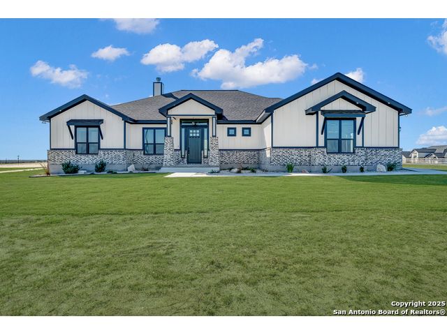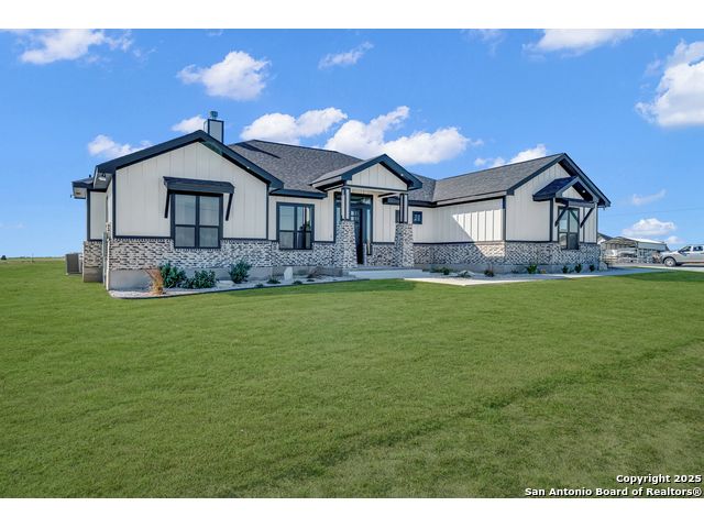 Welcome to this thoughtfully designed home nestled on a serene 1-acre lot in La Vernia. This 4-bedroom, 3.5-bath residence offers an open-concept layout filled with natural light and modern finishes throughout. The floor plan includes a private office, a guest suite with its own full bath, and a Jack-and-Jill bathroom connecting two secondary bedrooms-perfect for family living or hosting overnight guests. The primary suite is a standout feature, offering an oversized walk-in shower, spacious bedroom, and an impressive walk-in closet with direct access to the laundry room for added convenience. At the center of the home, the gourmet kitchen shines with a large island, custom cabinetry, pot filler, and a built-in wine and beverage fridge. The living room provides a cozy focal point with its wood-burning fireplace, creating a warm and welcoming gathering space. Step outside to enjoy the expansive back porch overlooking peaceful country views-an ideal spot for morning coffee or evening relaxation. With its thoughtful layout and high-quality finishes, this home delivers comfort, style, and the quiet charm of Texas country living. Come experience it for yourself!