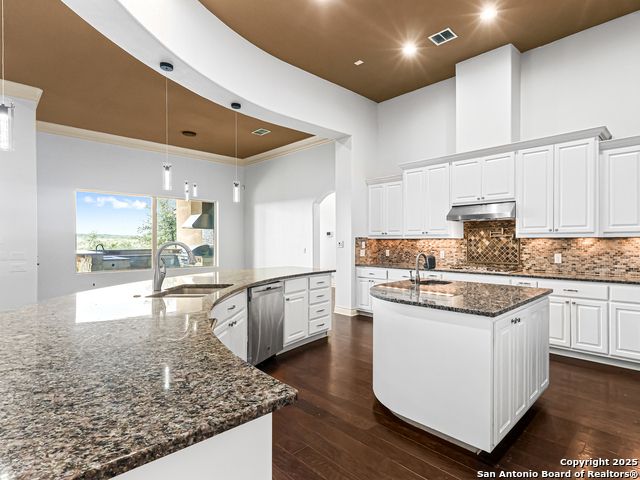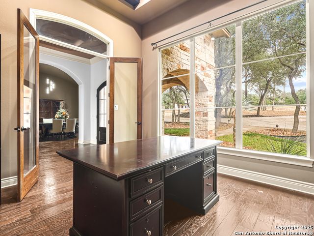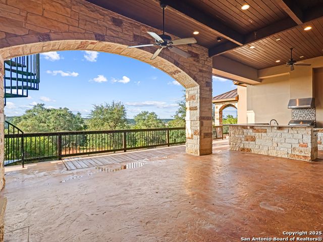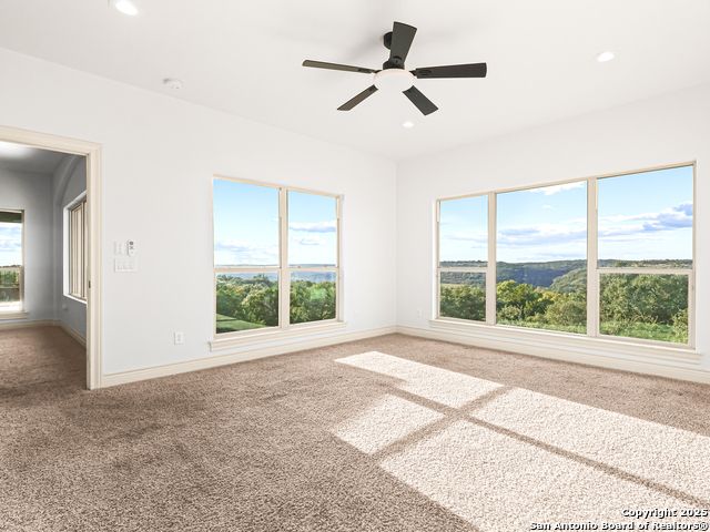 Nestled in the tranquil River Chase community of New Braunfels, Texas, this custom-built 5-bedroom home offers spacious, elegant living with stunning outdoor views and exclusive Guadalupe River access. Each bedroom boasts a private bathroom, while a main-floor home office provides a peaceful workspace. The master suite includes a cozy den, a large walk-in closet, and a luxurious bathroom, perfect for relaxation. Practical amenities such as a Tesla charger, metal roof, and a three-car garage with extra parking enhance convenience. Entertain effortlessly with an outdoor kitchen under soaring ceilings and enjoy multiple patios, an outdoor fireplace, and expansive 2-acre grounds. River Chase's exceptional amenities include a pool, basketball courts, frisbee golf, walking trails, gym, clubhouse, and veteran's memorial area. This unique hill country residence combines comfort, style and nature.