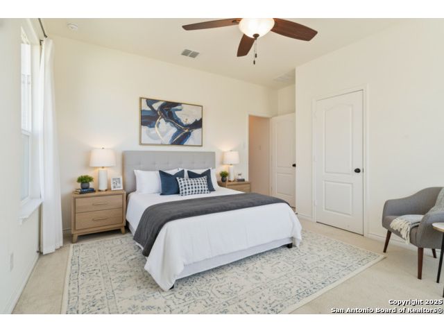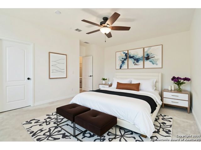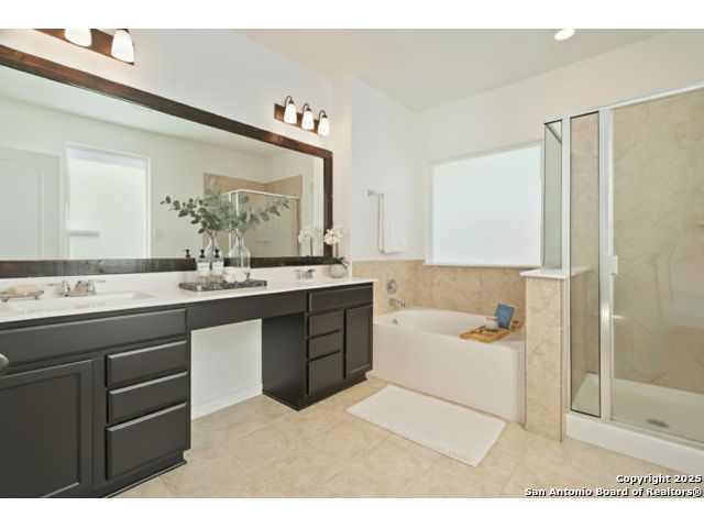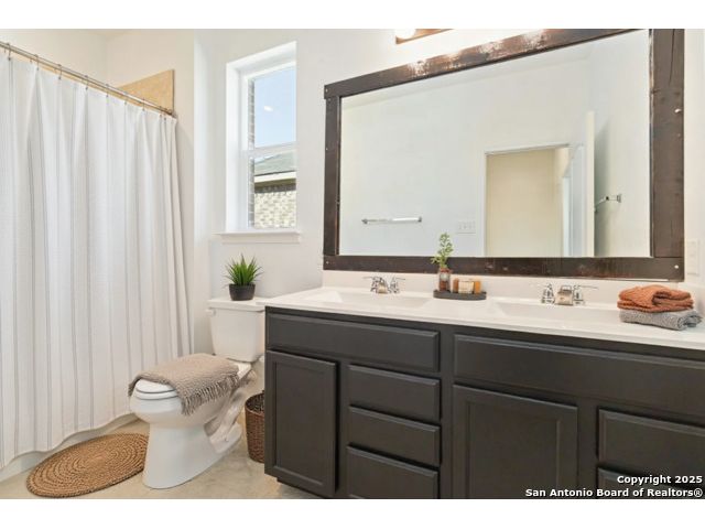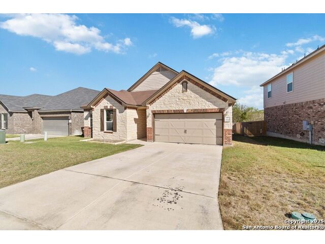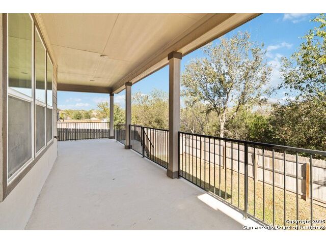 Discover effortless living in this beautifully designed one-story retreat, offering a unique "treehouse" feel with serene greenbelt views and exceptional backyard privacy. The customized floor plan is tailored for modern living, highlighted by a spacious, light-filled living room perfect for both relaxed everyday moments and memorable gatherings. The stylish kitchen features a large granite entertaining peninsula and sleek Whirlpool appliances, making hosting truly enjoyable. The private owner's wing provides a peaceful escape with two walk-in closets and a nearby flex room ideal for a nursery, home office, or cozy retreat. Guests will appreciate their own separate wing with generously sized bedrooms. Thoughtful touches like framed mirrors in every bathroom add to the home's refined detail. Step outside to an expansive covered porch where you can savor the views and unwind in the tranquility of the low-maintenance backyard. Enjoy close proximity to medical facilities, shopping, HEB, and dining options, all while living in the sought-after Texas Research Park community. Neighborhood amenities include a pool, playground, hiking trails, and a public golf course just minutes away. With the Amazon Fulfillment Center only 15 minutes down the road and Medina Lake just 30 minutes away, this location truly has it all. Don't miss your chance to experience this exceptional home-schedule your tour today!