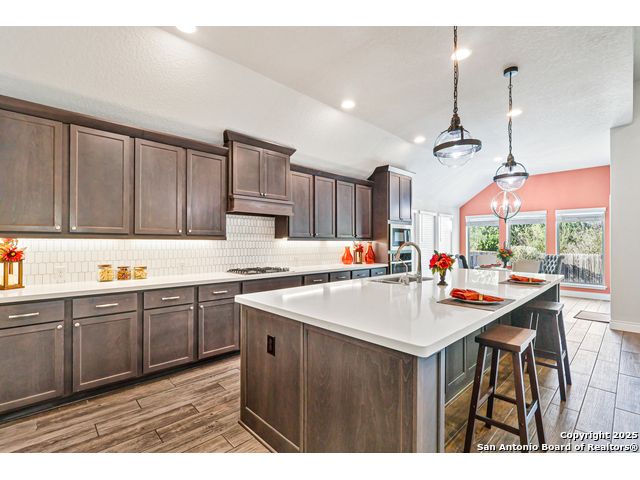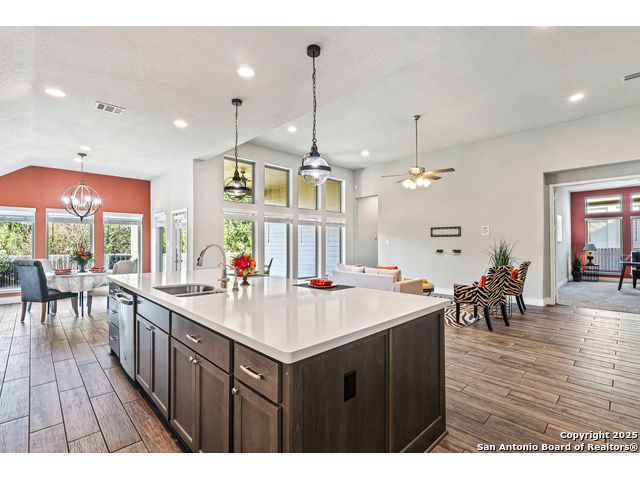VA ASSUMABLE! Welcome to 9131 Red Pony in The Reserve at Kallison Ranch! This popular Perry Homes single-story plan sits on a greenbelt homesite and features a well-designed layout with 2896 SF, 4 BRs, 3.5 bathrooms, and a private flex space/study. Faux-wood tile in all main areas creates an inviting interior enhanced by high ceilings and abundant natural light. The gourmet island kitchen includes an expansive breakfast bar, gas cooking, under-cabinet lighting, walk-in pantry, refrigerator, and a separate dining area-ideal for both everyday living and entertaining. The spacious primary suite offers a soaking tub, large walk-in shower, dual vanities, and generous walk-in closets. Additional highlights include NO CITY TAX, a 3-car garage, mudroom, full sprinkler system, water softener, ceiling fans, and the remainder of the builder's limited 10-year warranty. Enjoy outdoor living on the oversized covered patio overlooking the green space. Community amenities include a playground, playscape, dog park, and clubhouse. NISD schools serve the area, with Henderson Elementary conveniently located within the community. Start the New Year in your new home!