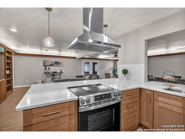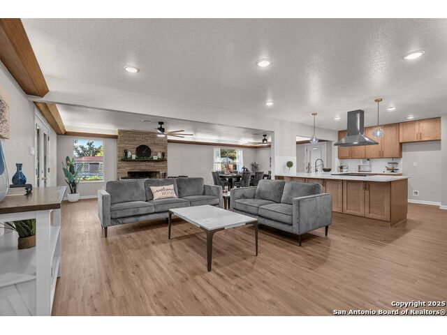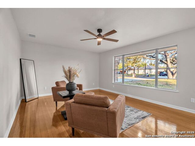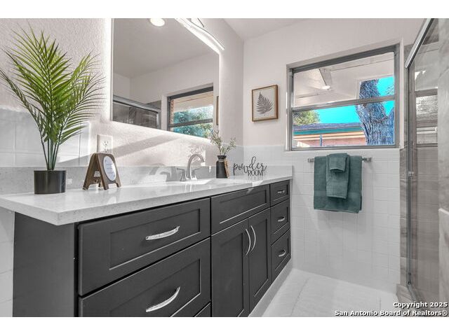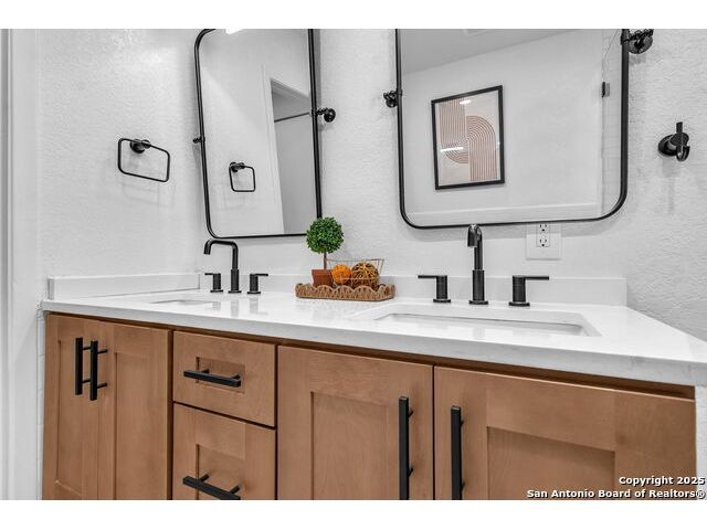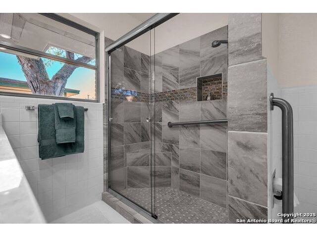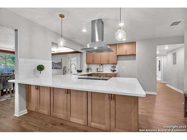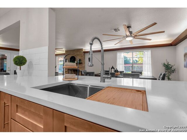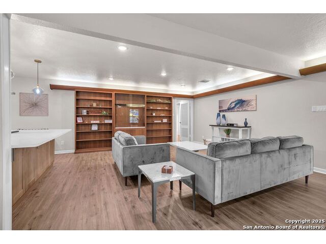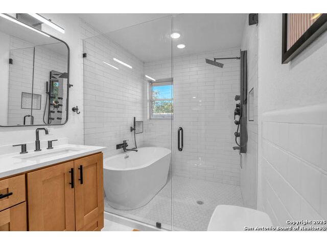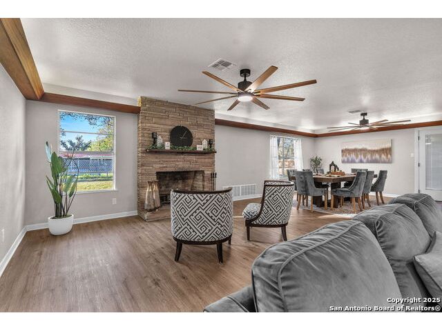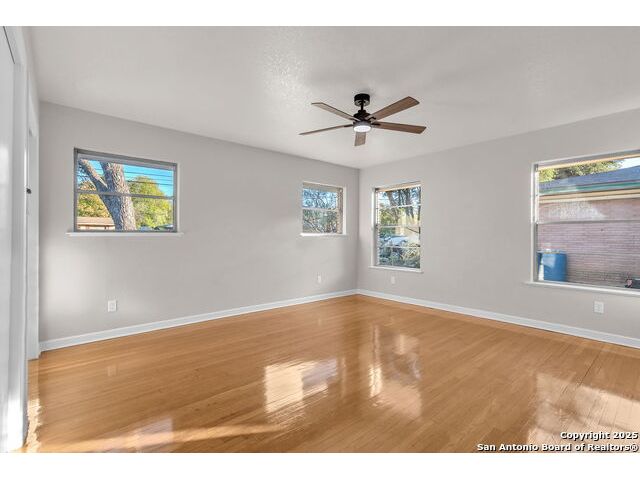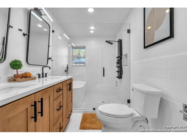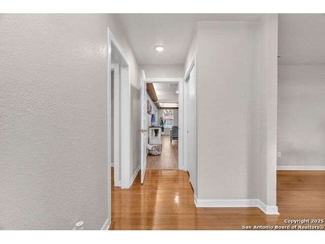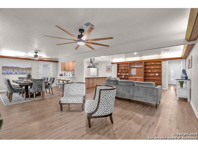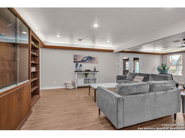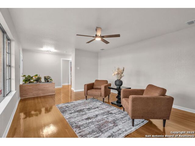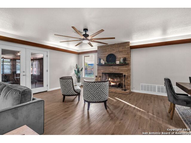Experience luxury, comfort, and timeless character in the heart of highly desired Castle Hills. This beautifully renovated single story sits on an expansive treed lot just under one third of an acre with No HOA and No Restrictions, giving you freedom and flexibility that is hard to find in San Antonio. Enjoy exceptional proximity to the San Antonio International Airport, the Medical Center, premier dining, shopping, and major highways for effortless access everywhere you need to be. Step inside to discover a full top tier rehab where original charm meets modern sophistication. The preserved hardwood floors were sanded, refinished, and polished to perfection. Every bathroom has been fully transformed with stunning upgrades. The primary suite features new lighting, a double vanity with premium cabinetry, a walk in shower, and an elegant soaking tub wrapped in floor to ceiling tile with a glass enclosure. The secondary bath shines with upgraded cabinetry, new lighting, a fog free LED backlit mirror, new Kohler fixtures, and a fresh spa inspired feel.The kitchen is a complete showpiece with premium cabinetry, an oversized island with storage, a farm style sink, upgraded vent hood, new stove and dishwasher, and an open layout designed to welcome family and guests while entertaining. A flex room adds versatility for an office, guest suite, or media room. Enjoy the enclosed patio sunroom featuring stained cedar accents and new French doors that bathe the living space in natural light. Spacious rooms throughout create a warm and inviting flow unique to this single story home.Major upgrades include new electrical throughout brought up to current code with new interior and exterior breaker panels, fully replaced ductwork, brand new insulation in walls and ceilings, new LVP flooring in common areas, new interior and exterior doors, fresh paint throughout, and professional tree care by the Howe Foundation. The home is topped with a durable metal roof for long term peace of mind. This is Castle Hills living at its finest. Freedom. Craftsmanship. Location. A rare opportunity to own a beautifully restored home with only one original owner before the renovation.