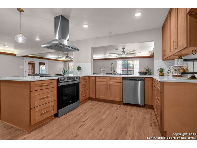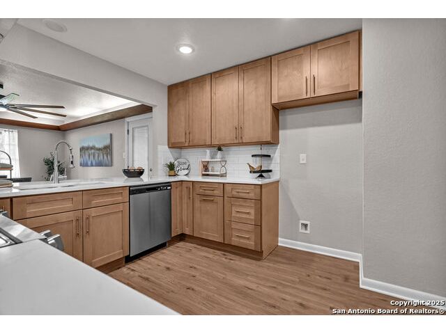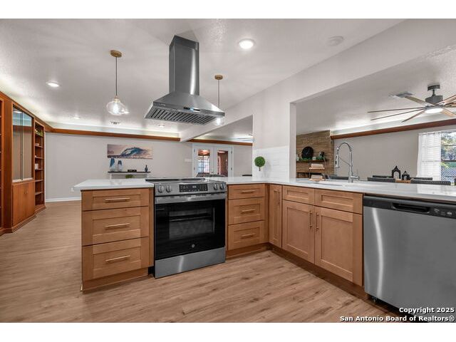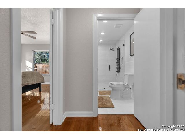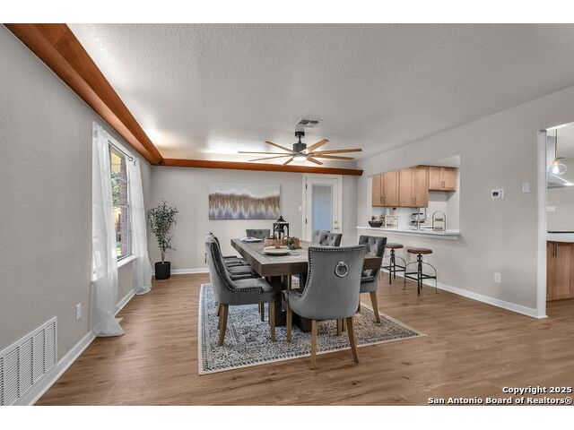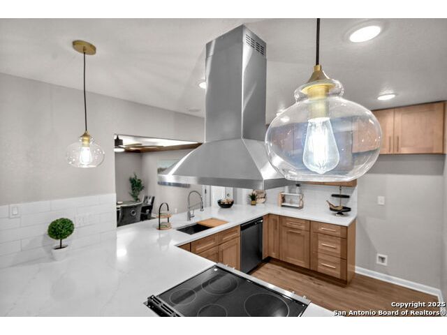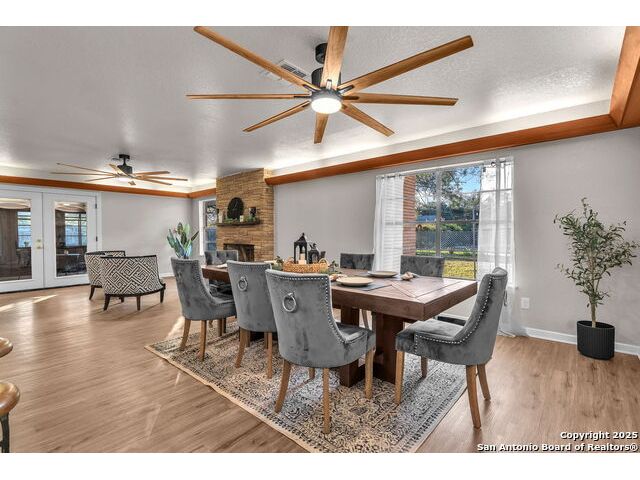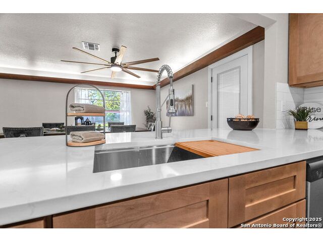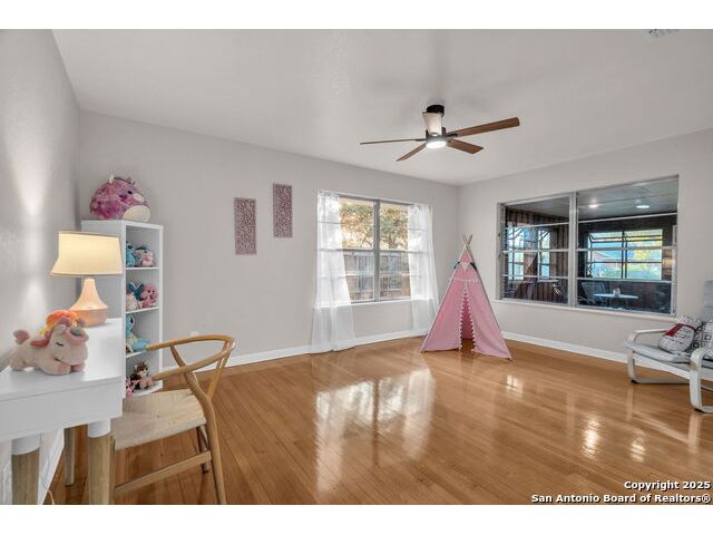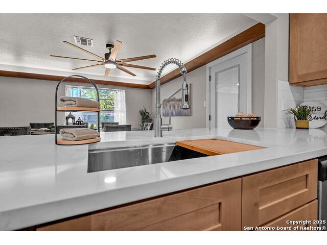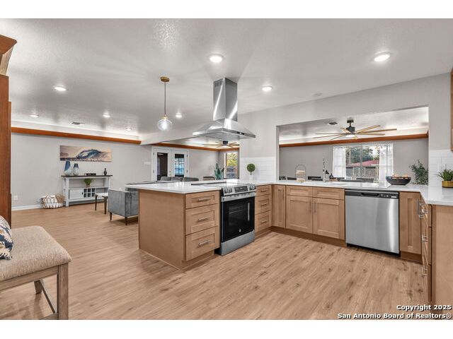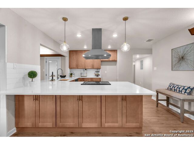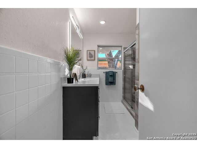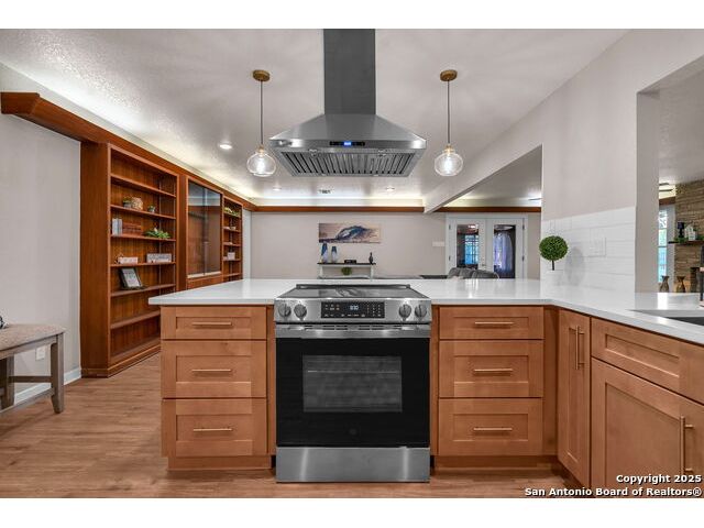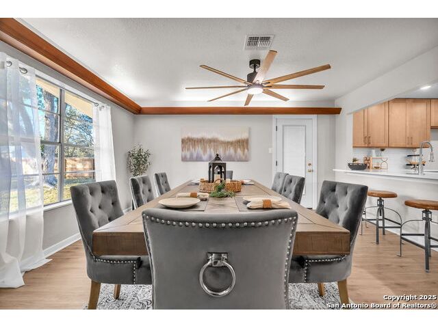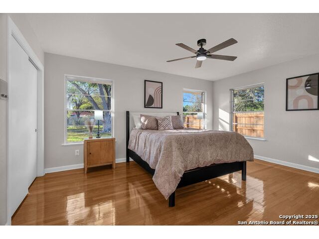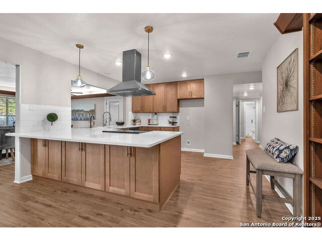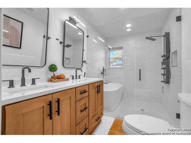 Experience luxury, comfort, and timeless character in the heart of highly desired Castle Hills. This beautifully renovated single story sits on an expansive treed lot just under one third of an acre with No HOA and No Restrictions, giving you freedom and flexibility that is hard to find in San Antonio. Enjoy exceptional proximity to the San Antonio International Airport, the Medical Center, premier dining, shopping, and major highways for effortless access everywhere you need to be. Step inside to discover a full top tier rehab where original charm meets modern sophistication. The preserved hardwood floors were sanded, refinished, and polished to perfection. Every bathroom has been fully transformed with stunning upgrades. The primary suite features new lighting, a double vanity with premium cabinetry, a walk in shower, and an elegant soaking tub wrapped in floor to ceiling tile with a glass enclosure. The secondary bath shines with upgraded cabinetry, new lighting, a fog free LED backlit mirror, new Kohler fixtures, and a fresh spa inspired feel.The kitchen is a complete showpiece with premium cabinetry, an oversized island with storage, a farm style sink, upgraded vent hood, new stove and dishwasher, and an open layout designed to welcome family and guests while entertaining. A flex room adds versatility for an office, guest suite, or media room. Enjoy the enclosed patio sunroom featuring stained cedar accents and new French doors that bathe the living space in natural light. Spacious rooms throughout create a warm and inviting flow unique to this single story home.Major upgrades include new electrical throughout brought up to current code with new interior and exterior breaker panels, fully replaced ductwork, brand new insulation in walls and ceilings, new LVP flooring in common areas, new interior and exterior doors, fresh paint throughout, and professional tree care by the Howe Foundation. The home is topped with a durable metal roof for long term peace of mind. This is Castle Hills living at its finest. Freedom. Craftsmanship. Location. A rare opportunity to own a beautifully restored home with only one original owner before the renovation.