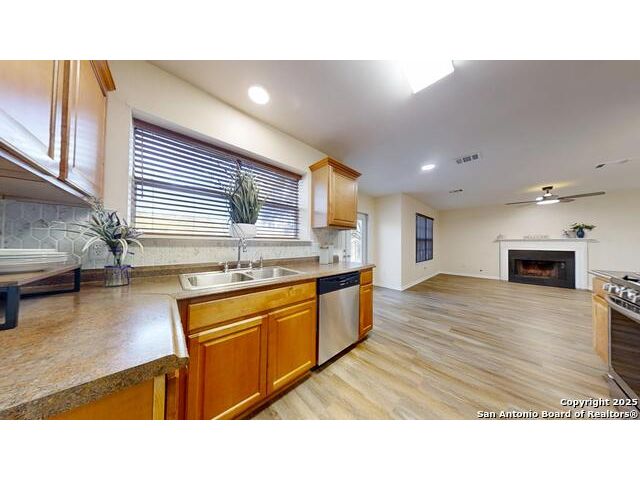 Northeast spacious two story 3/2.5/2 with loft! Fresh paint inside, ceiling fans, new light fictures, new easy care flooring on main level! High ceiling at entry, great flow from entry to living room, dining room, kitchen area, eat in kitchen area and family room with fireplace! Easy access to back patio for gatherings with family and friends! Spacious backyard! Some fresh paint outside. New roof! Move in ready and convenient to RAFB, Fort Sam, shopping, hospitals and easy access to major highways! Must see!